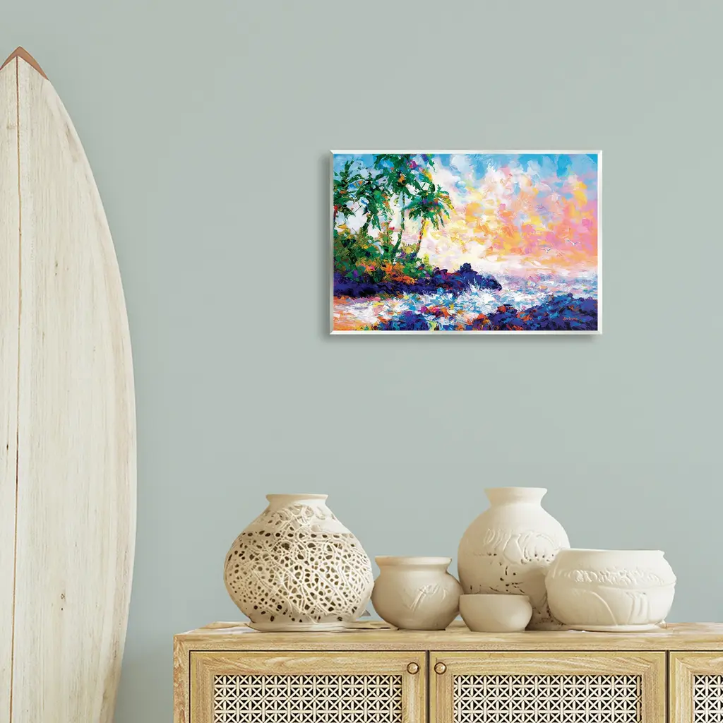 Our wall plaques start as high-quality lithograph prints mounted on durable 0.5-inch thick MDF wood. Each piece is hand finished and comes with a fresh layer of white foil on the sides to give it a crisp, clean look. Plaques arrive ready to hang without installation and come with removable plastic corners to keep them from damage in transit. Stupell Wall Art is made in the USA.Features: Dimensions: 15 x 0.5 x 10 InchesWall Plaque Product Sizes Include 15"x10" and 19"x13". All wall plaque products have a 0.5" Depth. Wall Art is Ready to Hang with Hardware Free Hanging. No installation required. For Easy Set Up Lean or Layer Artwork on Shelf or Against Wall.All of our wall plaques start off as high quality lithograph prints that are then mounted on durable 0.5 inch thick MDF wood. Each piece is hand finished and comes with a fresh layer of foil on the sides to give it a crisp clean look. Made In USA.Artwork Relates To: Modern, Nature, Sea, Water, Beach, Coast, Shore, Palm Tree, AbstractDesign by Leon Devenice