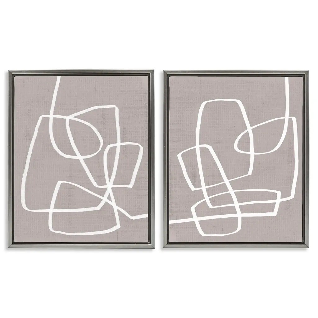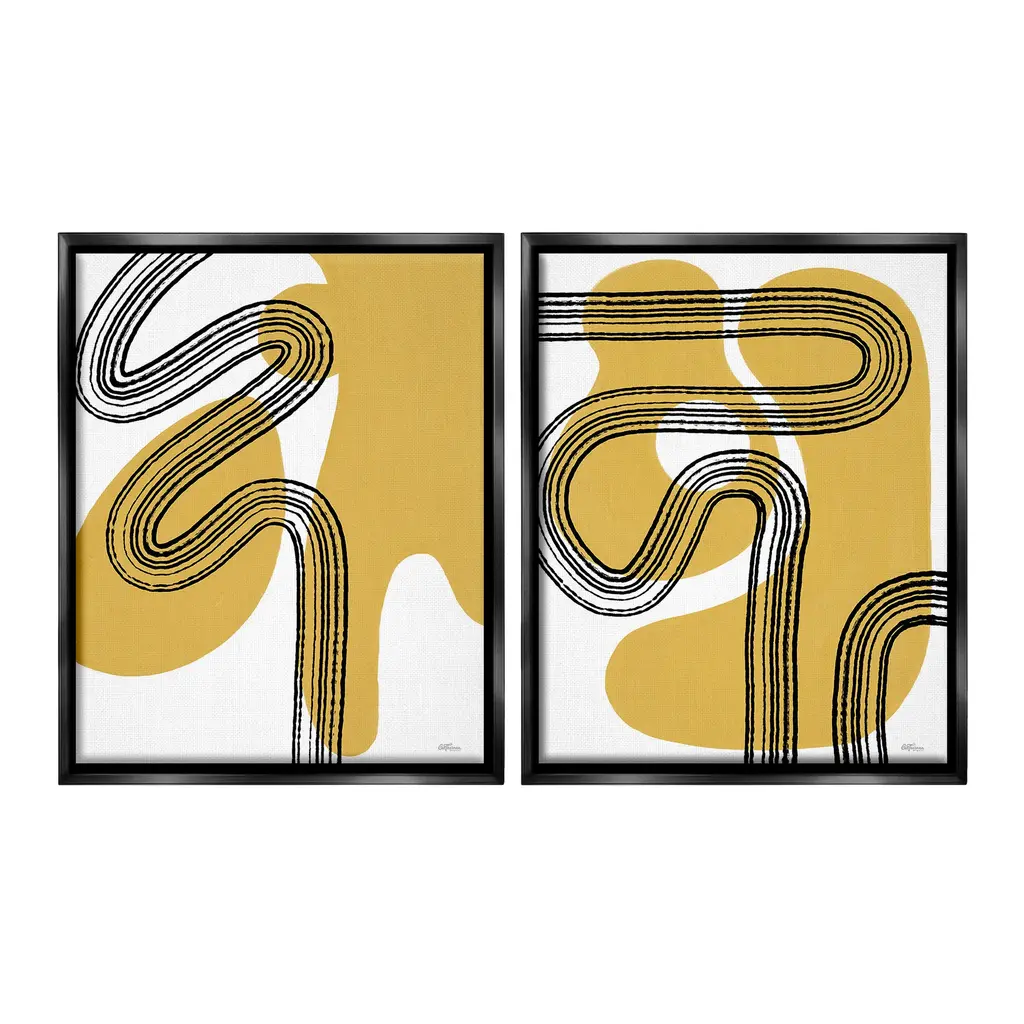 Elevate your home or office to the next level with Stupell Framed Floating Canvas Wall Art. Our premium hand-stretched canvas is mounted securely into a sturdy lightweight frame. The museum-style gap between the wrapped canvas and the box frame gives the illusion of floating artwork. Stupell Wall Art is made in the USA.Features: Dimensions: 2 Piece Set, Each Frame is 17 x 1.7 x 21Two Piece Floater Framed Canvas are available as 17x21 or 25x31 Panels. All Floater Frame Products have a 1.7" Depth.Wall Art is Ready to Hang with Hardware Free Hanging. No Installation required. For Easy Set Up Lean or Layer Artwork on Shelf or Against Wall. Artwork is Permently Fixed into the Frame.Our elevated 1.7" Thick Floating Frame is the perfect complement to our canvas style Wall Art. We use only the highest quality inks in house with industry leading printing solutions. Canvas is hand stretched over a durable wood foundation and then mounted securly into a Modern Box Frame. Made in the USA.Artwork Relates To: Abstract, Modern, Contemporary, Shapes, Minimal, Spiral, DoodleDesign by Cat Thurman Designs