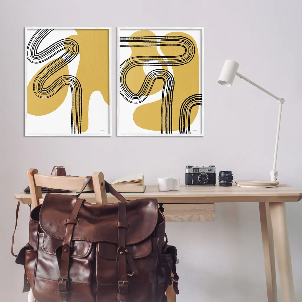Fill any space in your home or office with our Framed Wall Art Sets. Our framed artwork is securely mounted into a 1.5-inch thick wood grain frame and ready to hang. Frames are available in three alluring styles: black, gray farmhouse and white. Stupell Wall Art is made in the USA.Features: Dimensions: 2 Piece Set, Each Panel is 11 x 1.5 x 14 FramedTwo Piece Framed Giclee Sets are available as 11"x14", 16"x20" or 24"x30" Panels. All Framed Giclee Products have a 1.5" Depth.Wall Art is Ready to Hang with Hardware Free Hanging. No installation required. For Easy Set Up Lean or Layer Artwork on Shelf or Against Wall.Curated Wall Art Sets make it easy for you complete the theme for any room. Our giclée prints are carefully mounted on a durable MDF backing, and then perfectly finished in a 1.5 inch thick woodgrain frame. Mounted frame colors include black, gray farmhouse and white. Made In USA.Artwork Relates To: Abstract, Modern, Contemporary, Shapes, Minimal, Spiral, DoodleDesign by Cat Thurman Designs