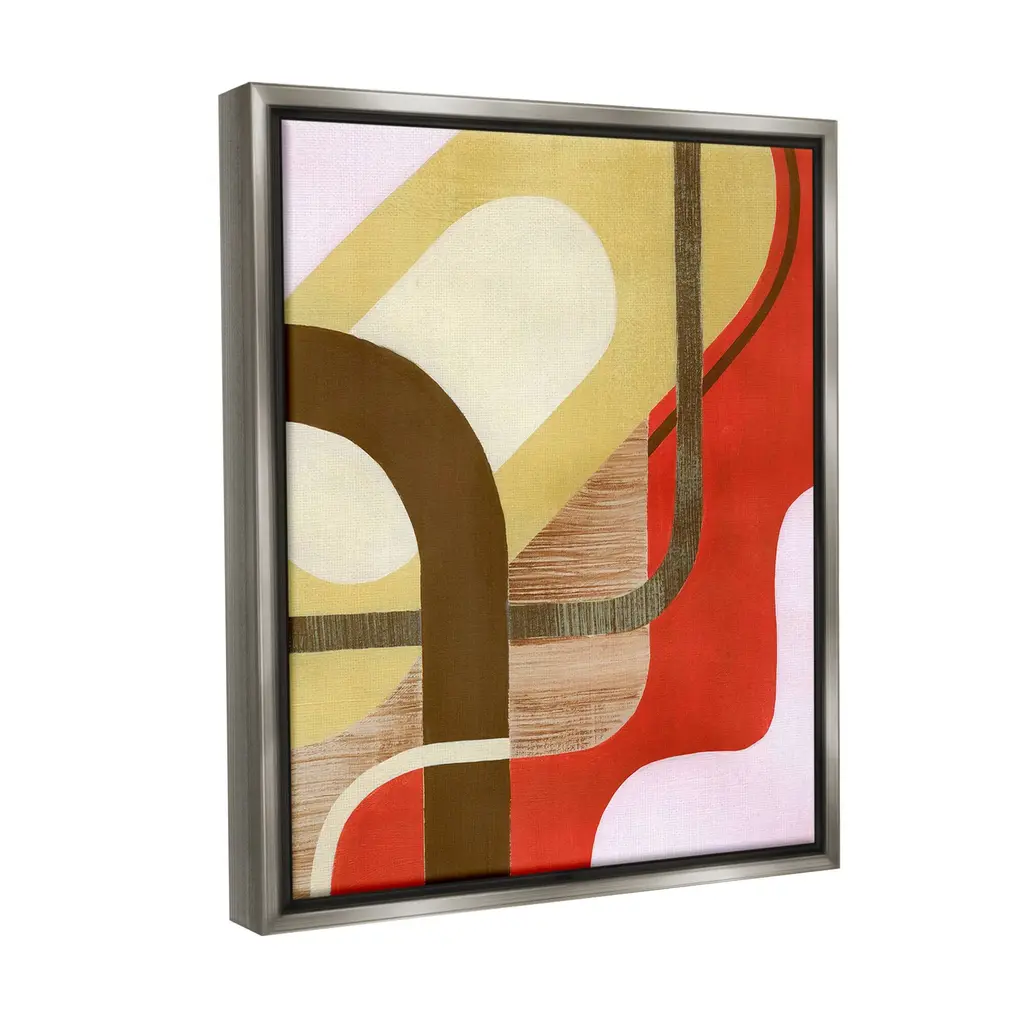 Elevate your home or office to the next level with Stupell Framed Floating Canvas Wall Art. Our premium hand-stretched canvas is mounted securely into a sturdy lightweight frame. The museum-style gap between the wrapped canvas and the box frame gives the illusion of floating artwork. Stupell Wall Art is made in the USA.Features: Dimensions: 17 x 1.7 x 21 Frame, 16 x 1.5 x 20 Canvas ArtFloating Frame Canvas Products are available in sizes 17"x21" and 25"x31". All Floating Frame Canvas Products have a 1.7" Depth.Wall Art is Ready to Hang with Hardware Free Hanging. No Installation required. For Easy Set Up Lean or Layer Artwork on Shelf or Against Wall. Artwork is Permently Fixed into the Frame.Our elevated 1.7" Thick Floating Frame is the perfect complement to our canvas style Wall Art. We use only the highest quality inks in house with industry leading printing solutions. Canvas is hand stretched over a durable wood foundation and then mounted securly into a Modern Box Frame. Made in the USA.Artwork Relates To: Abstract, Modern, Contemporary, Geometric, Retro, RusticDesign by Grace Popp