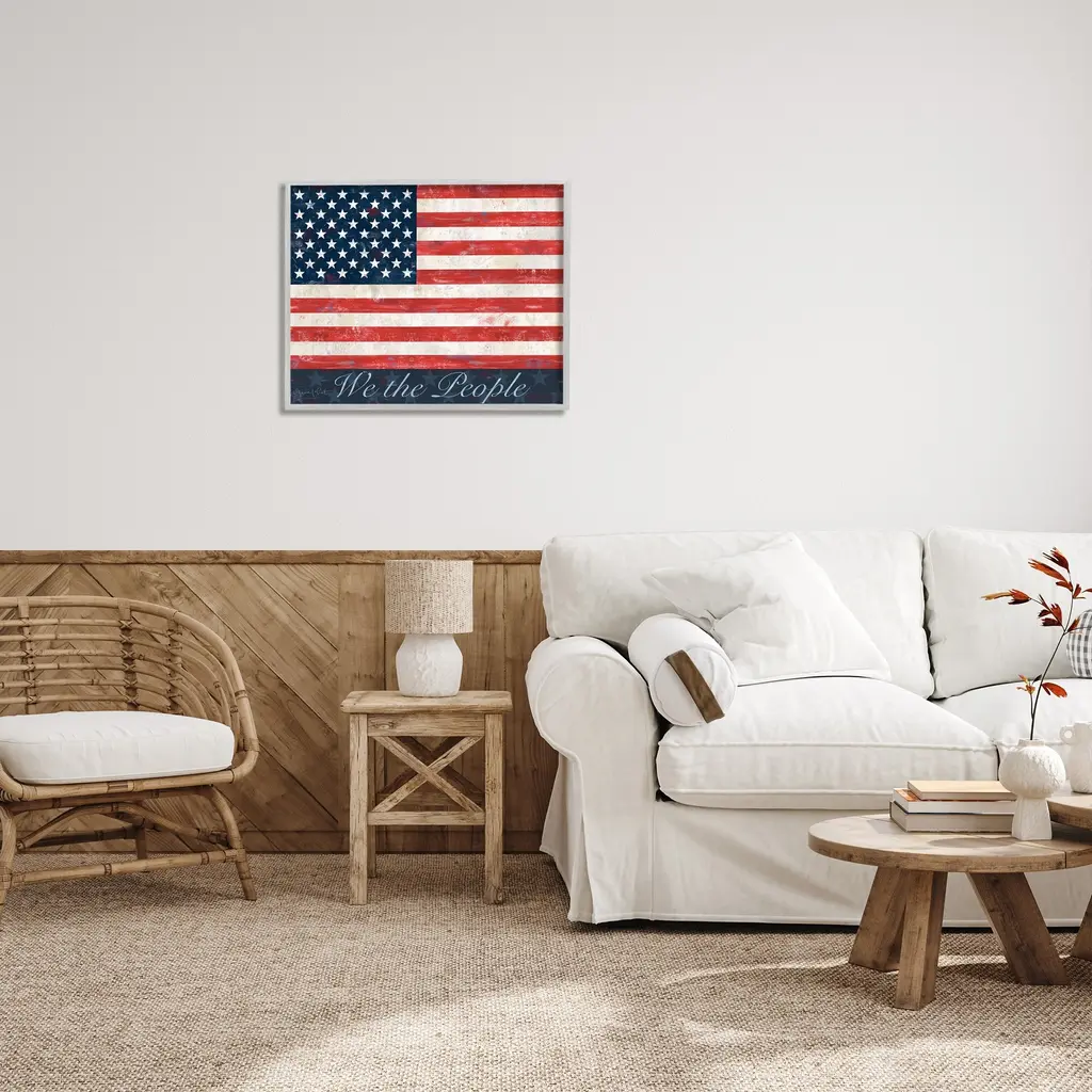 Add dimension to any room with our textured Framed Giclee Artwork. Our framed artwork is securely mounted into a 1.5-inch thick wood grain frame and ready to hang. Frames are available in three alluring styles: black, gray farmhouse and white. In addition, you should check out our oversized options if you want a statement piece. Stupell Wall Art is made in the USA.Features: Dimensions: 14 x 1.5 x 11 FramedFramed Giclee Products are available in the sizes 14"x11", 20"x16" or 30"x24". All Framed Giclee Products have a 1.5" Depth. Wall Art is Ready to Hang with Hardware Free Hanging. No installation required. For Easy Set Up Lean or Layer Artwork on Shelf or Against Wall.Our giclée prints are carefully mounted on a durable MDF backing, and then perfectly finished in a 1.5 inch thick woodgrain frame. Mounted frame colors include black, gray farmhouse and white. Made In USA.Artwork Relates To: American Flag, Flag, Americana, Patriotic, Rustic, Country, Farmhouse, We the PeopleDesign by Annie LaPoint