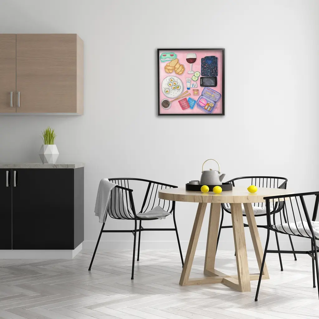 Add dimension to any room with our textured Framed Giclee Artwork. Our framed artwork is securely mounted into a 1.5-inch thick wood grain frame and ready to hang. Frames are available in three alluring styles: black, gray farmhouse and white. In addition, you should check out our oversized options if you want a statement piece. Stupell Wall Art is made in the USA.Features: Dimensions: 12 x 1.5 x 12 FramedFramed Giclee Product Sizes Include 12"x12", 17"x17", and 24"x24". Framed Giclee Products have a 1.5" Depth. Wall Art is Ready to Hang with Hardware Free Hanging. No installation required. For Easy Set Up Lean or Layer Artwork on Shelf or Against Wall.Our giclée prints are carefully mounted on a durable MDF backing, and then perfectly finished in a 1.5 inch thick woodgrain frame. Mounted frame colors include black, gray farmhouse and white. Made In USA.Artwork Relates To: Food, Lunch, Meal, Wine, Cosmetics, Makeup, Slippers, Sushi, Beauty, Night, WeekendDesign by Ale Saiz Studio