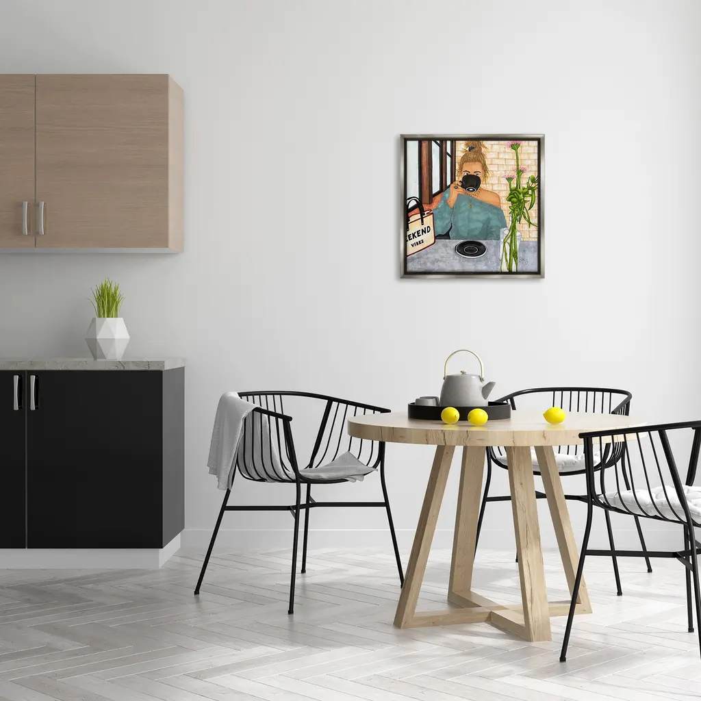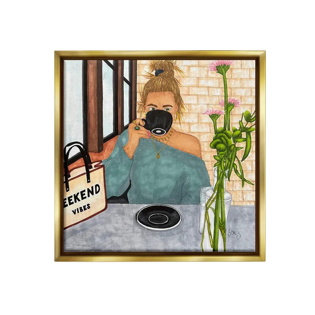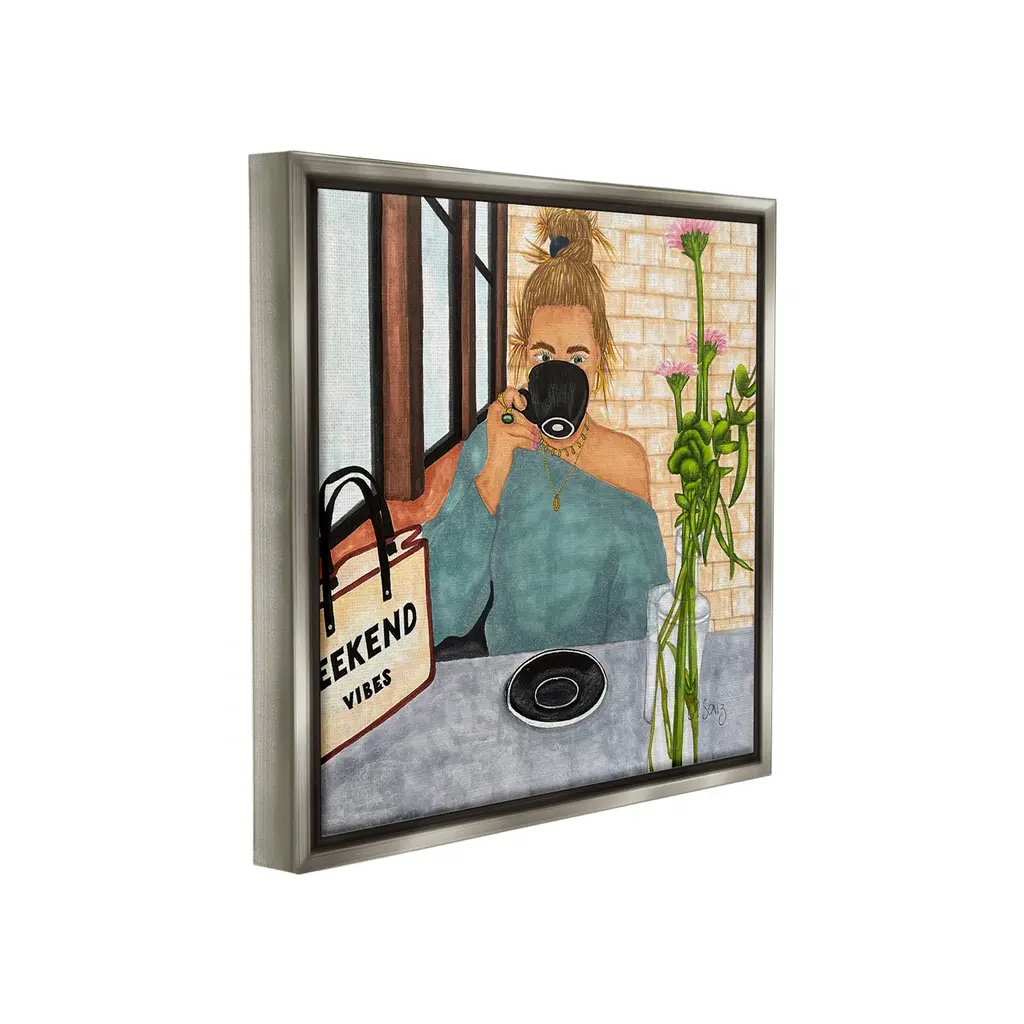 Elevate your home or office to the next level with Stupell Framed Floating Canvas Wall Art. Our premium hand-stretched canvas is mounted securely into a sturdy lightweight frame. The museum-style gap between the wrapped canvas and the box frame gives the illusion of floating artwork. Stupell Wall Art is made in the USA.Features: Dimensions: 18 x 1.7 x 18 Frame, 17 x 1.5 x 17 Canvas ArtFloating Frame Canvas Products are available in sizes 18"x18" and 25"x25". All Floating Frame Canvas Products have a 1.7" Depth.Wall Art is Ready to Hang with Hardware Free Hanging. No Installation required. For Easy Set Up Lean or Layer Artwork on Shelf or Against Wall. Artwork is Permently Fixed into the Frame.Our elevated 1.7" Thick Floating Frame is the perfect complement to our canvas style Wall Art. We use only the highest quality inks in house with industry leading printing solutions. Canvas is hand stretched over a durable wood foundation and then mounted securly into a Modern Box Frame. Made in the USA.Artwork Relates To: Person, Woman, Coffee, Cafe, Flower, Floral, Fashion, Glam, Weekend VibesDesign by Ale Saiz Studio