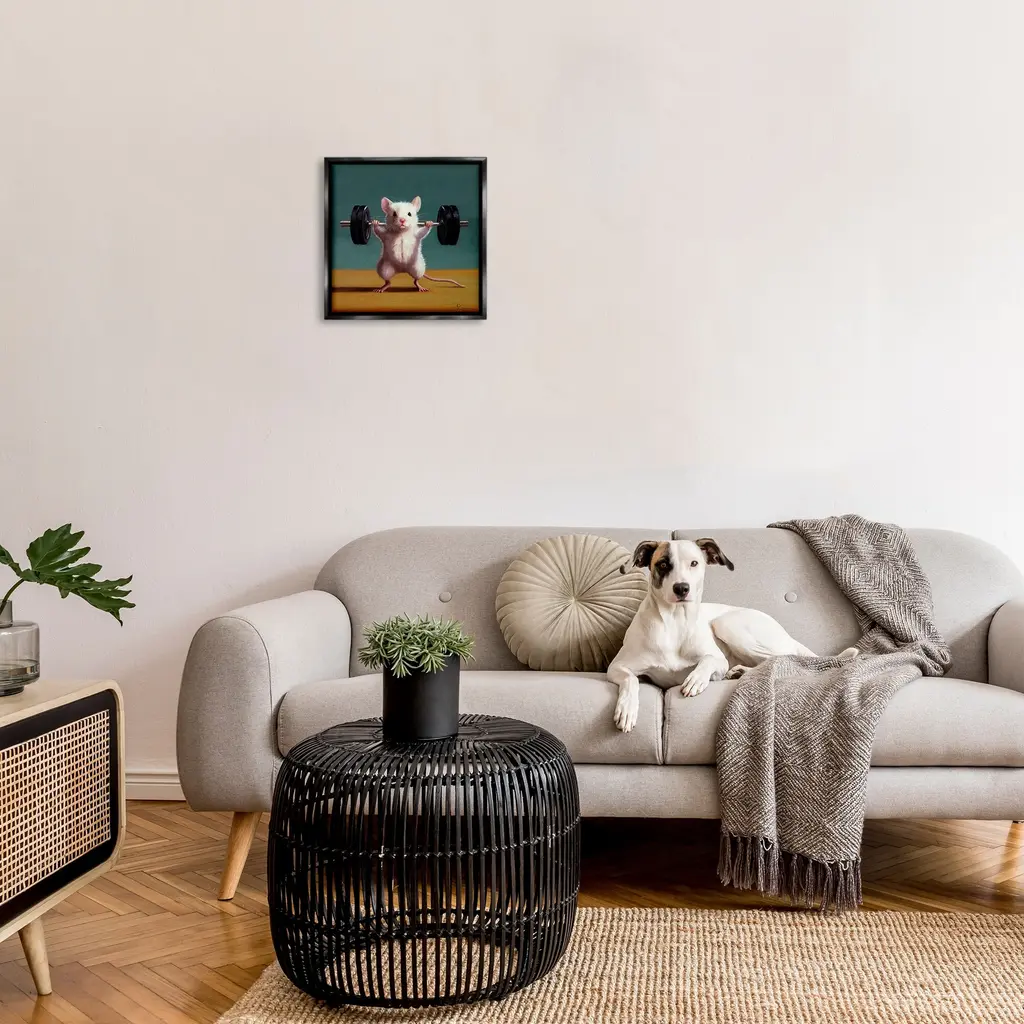 Stupell Weight Lifting Mouse Framed Floater Canvas Wall Art Design By Lucia Heffernan - 18 X 18 - Black