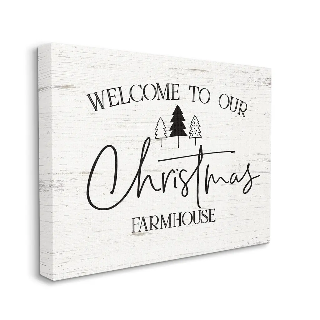 Stupell Welcome Christmas Farmhouse Text Rustic Countryside Design Canvas Wall Art - Black - 30 X 24