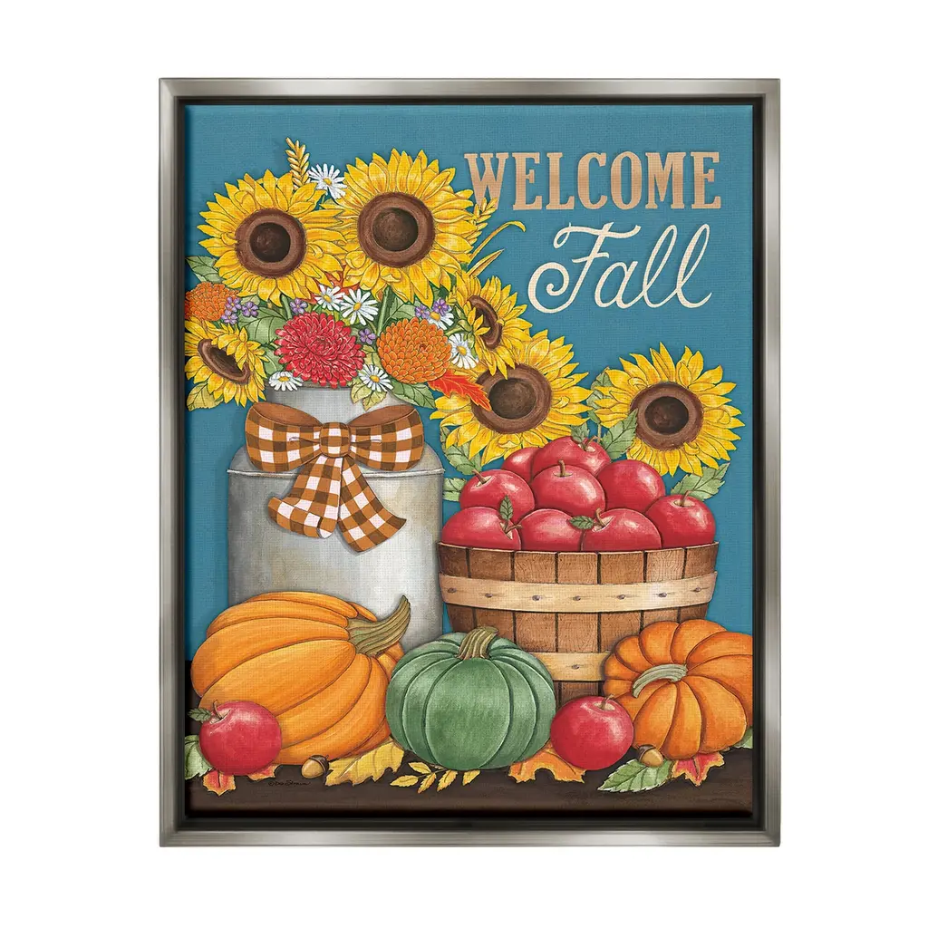 Stupell Welcome Fall Harvest Framed Floater Canvas Wall Art Design By Deb Strain - 17 X 21 - Gold
