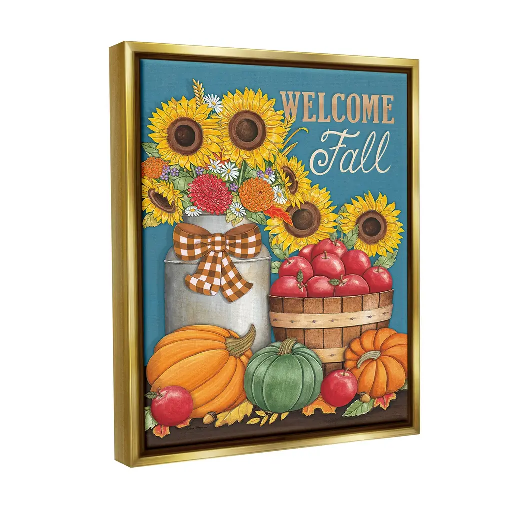 Elevate your home or office to the next level with Stupell Framed Floating Canvas Wall Art. Our premium hand-stretched canvas is mounted securely into a sturdy lightweight frame. The museum-style gap between the wrapped canvas and the box frame gives the illusion of floating artwork. Stupell Wall Art is made in the USA.Features: Dimensions: 17 x 1.7 x 21 Frame, 16 x 1.5 x 20 Canvas ArtFloating Frame Canvas Products are available in sizes 17"x21" and 25"x31". All Floating Frame Canvas Products have a 1.7" Depth.Wall Art is Ready to Hang with Hardware Free Hanging. No Installation required. For Easy Set Up Lean or Layer Artwork on Shelf or Against Wall. Artwork is Permently Fixed into the Frame.Our elevated 1.7" Thick Floating Frame is the perfect complement to our canvas style Wall Art. We use only the highest quality inks in house with industry leading printing solutions. Canvas is hand stretched over a durable wood foundation and then mounted securly into a Modern Box Frame. Made in the USA.Artwork Relates To: Flower, Plant, Sunflower, Food, Produce, Pumpkin, Vegetable, Countryside, Farm, Harvest, Nature, Apple, Fall, Autumn, Plaid, Welcome FallDesign by Deb Strain