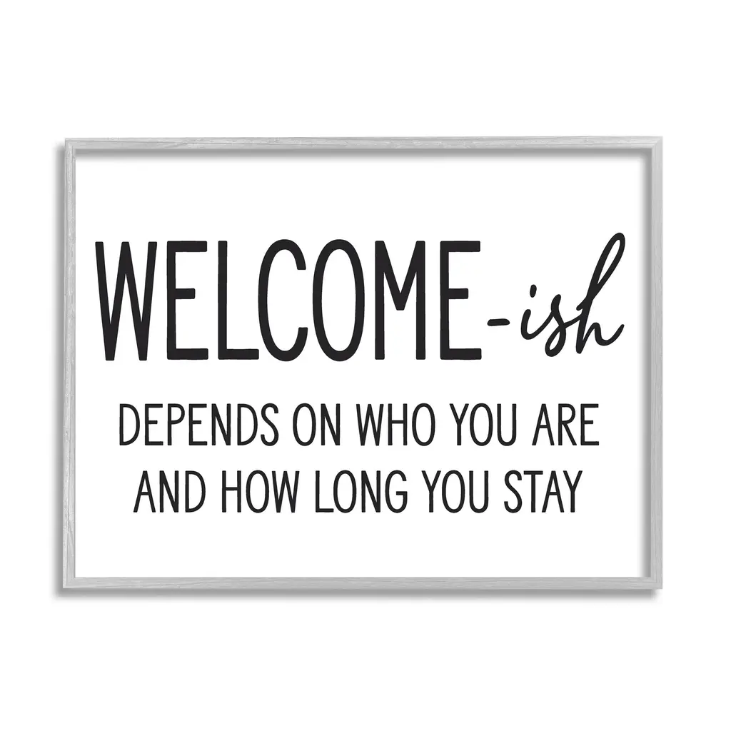 Stupell Welcome-Ish Funny Entryway Sign Casual Humor Framed Wall Art, Design By Lettered And Lined - White - 30 X 24 - Black