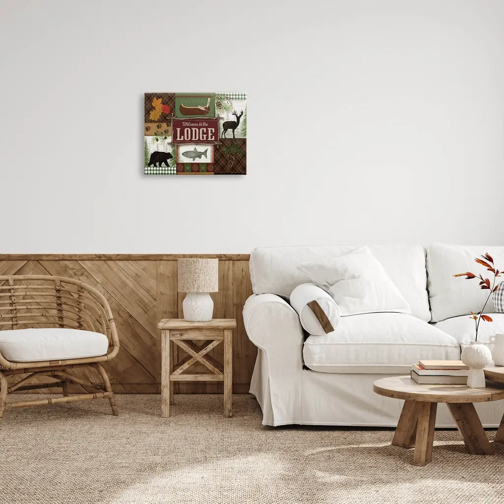 Stupell Welcome Lodge Plaid Wildlife Sign Canvas Wall Art By Mollie B. - 20 X 16