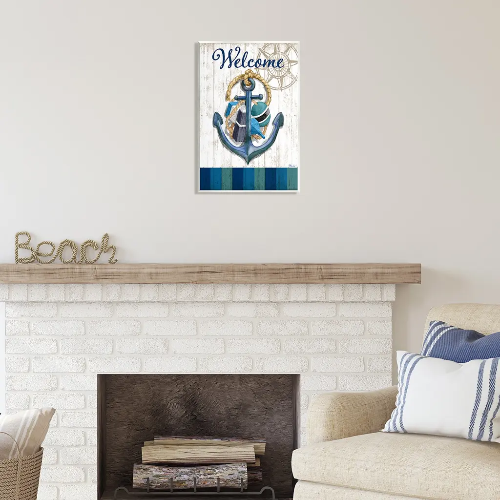 Our wall plaques start as high-quality lithograph prints mounted on durable 0.5-inch thick MDF wood. Each piece is hand finished and comes with a fresh layer of white foil on the sides to give it a crisp, clean look. Plaques arrive ready to hang without installation and come with removable plastic corners to keep them from damage in transit. Stupell Wall Art is made in the USA.Features: Dimensions: 10 x 0.5 x 15 InchesWall Plaque Sizes Include Standard: 10 x 0.5 x 15 Oversized: 13 x 0.5 x 19Wall Art is Ready to Hang with Hardware Free Hanging. No installation required. For Easy Set Up Lean or Layer Artwork on Shelf or Against Wall.All of our wall plaques start off as high quality lithograph prints that are then mounted on durable 0.5 inch thick MDF wood. Each piece is hand finished and comes with a fresh layer of foil on the sides to give it a crisp clean look. Made In USA.Artwork Relates To: Hook, Anchor, Buoy, Rustic, Compass, Welcome, Stripes, Nautical, MarineDesign by Paul Brent