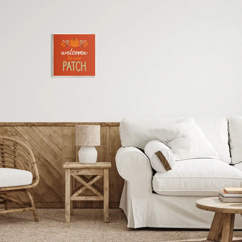 Our wall plaques start as high-quality lithograph prints mounted on durable 0.5-inch thick MDF wood. Each piece is hand finished and comes with a fresh layer of white foil on the sides to give it a crisp, clean look. Plaques arrive ready to hang without installation and come with removable plastic corners to keep them from damage in transit. Stupell Wall Art is made in the USA.Features: Dimensions: 12 x 0.5 x 12 InchesWall Art is Ready to Hang with Hardware Free Hanging. No installation required. For Easy Set Up Lean or Layer Artwork on Shelf or Against Wall.All of our wall plaques start off as high quality lithograph prints that are then mounted on durable 0.5 inch thick MDF wood. Each piece is hand finished and comes with a fresh layer of foil on the sides to give it a crisp clean look. Made In USA.Artwork Relates To: Plant, Pumpkin, Floral, Botanical, Fall, Autumn, Welcome to our PatchDesign by Emily Dumas