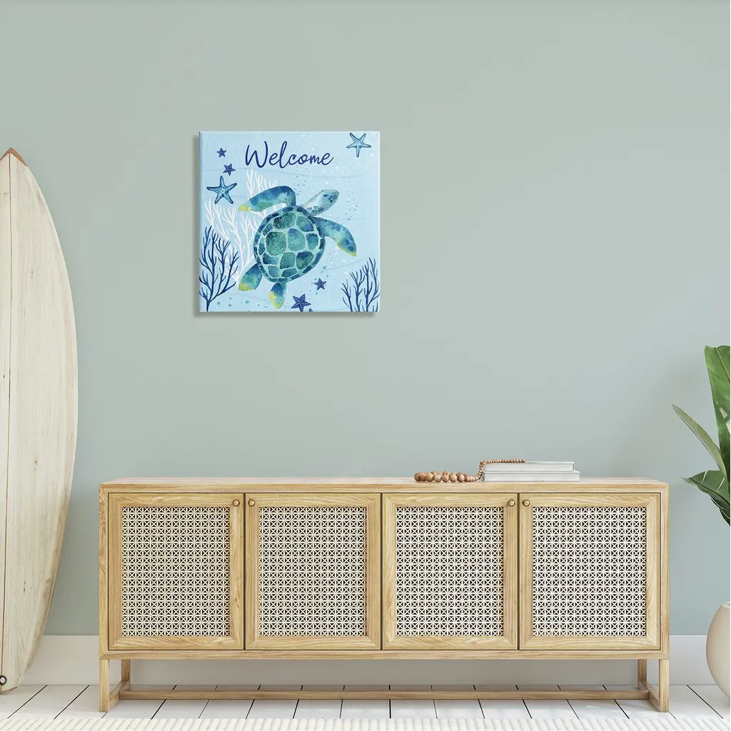 Stupell Welcome Sign Sea Turtle Swimming Ocean Life Canvas Wall Art, Design By Sharon Lee - 24 X 24