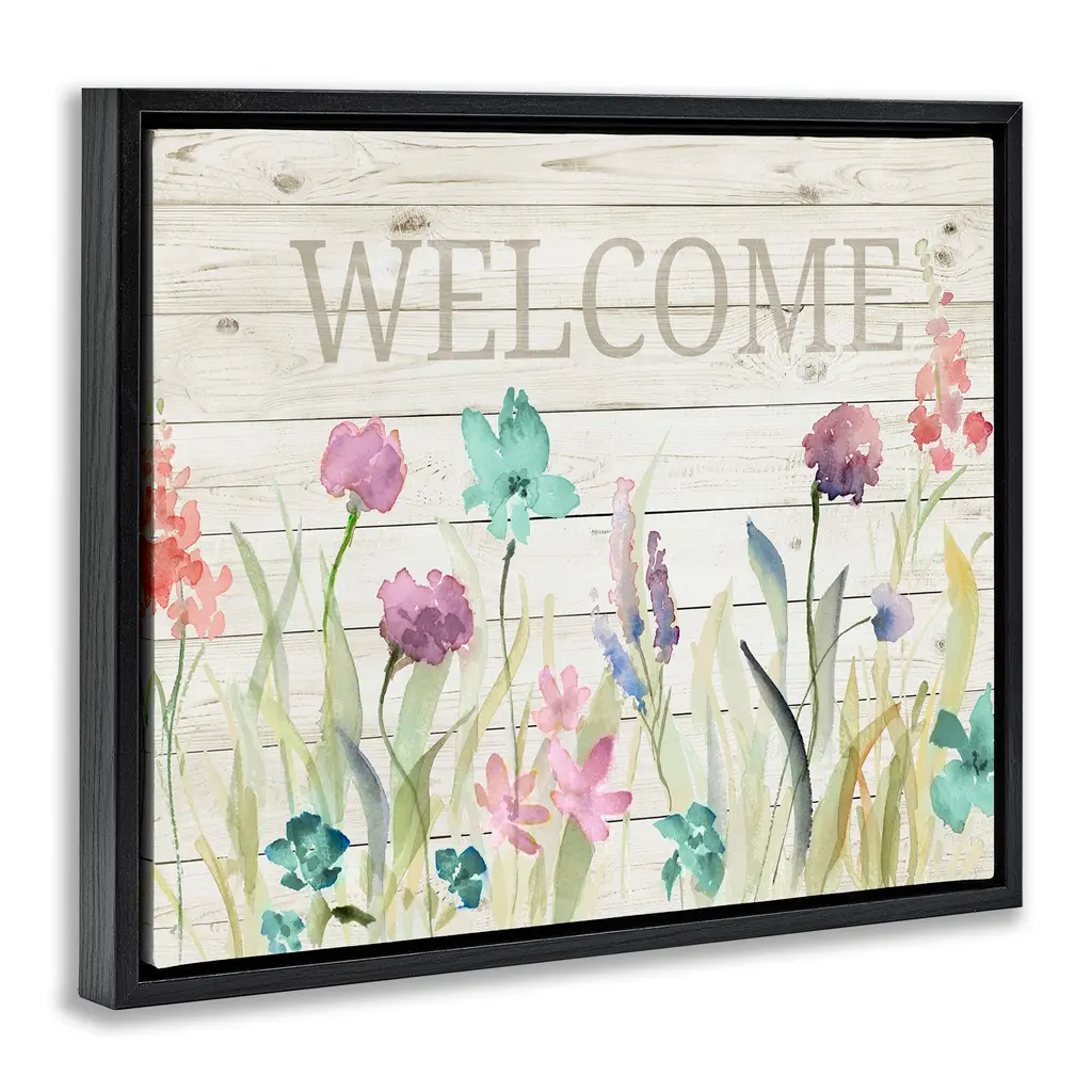 Stupell Welcome Sign Spring Wildflowers Framed Floater Canvas Wall Art Design By Lanie Loreth - 31 X 25 - Black