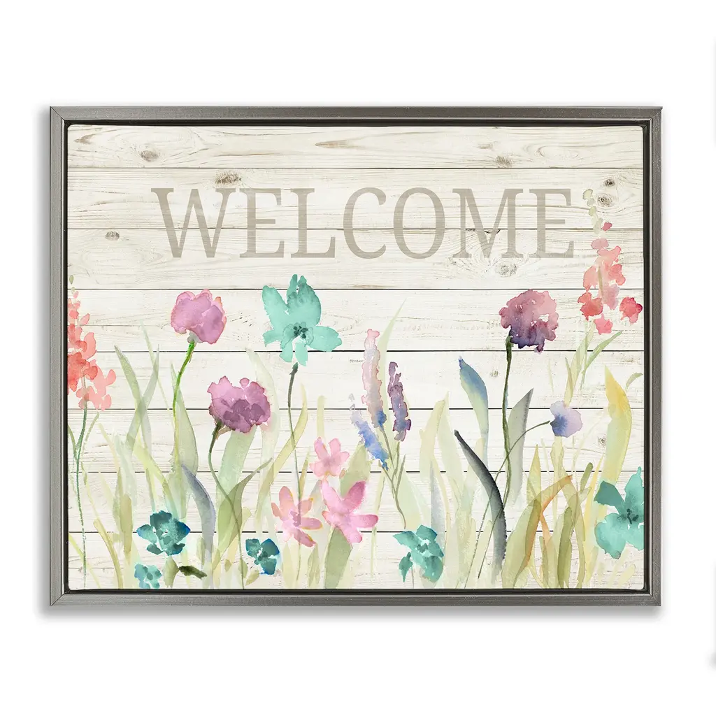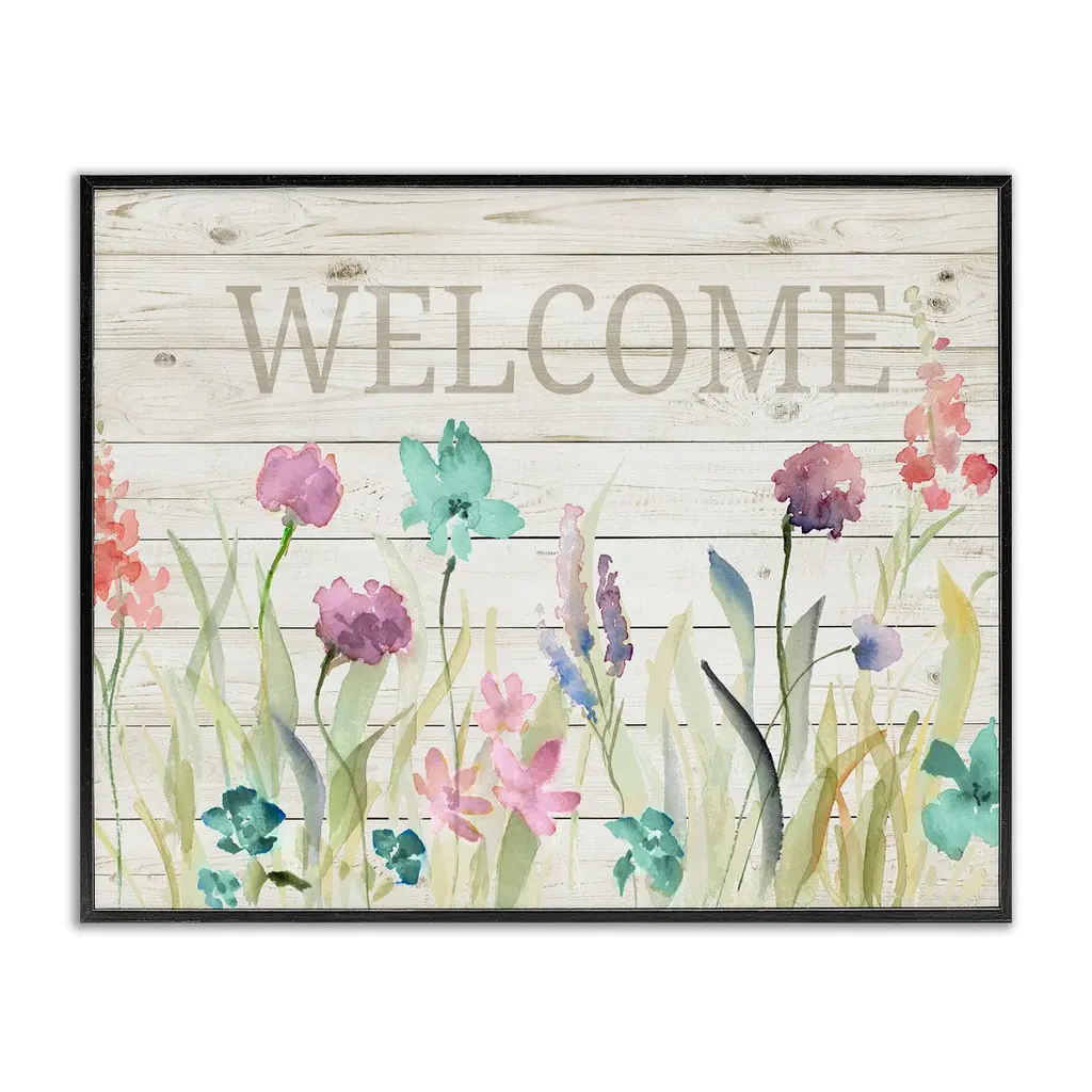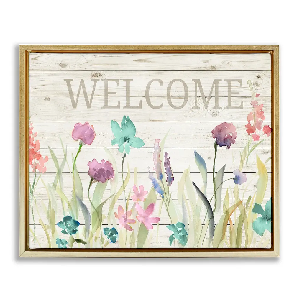 Elevate your home or office to the next level with Stupell Framed Floating Canvas Wall Art. Our premium hand-stretched canvas is mounted securely into a sturdy lightweight frame. The museum-style gap between the wrapped canvas and the box frame gives the illusion of floating artwork. Stupell Wall Art is made in the USA.Features: Dimensions: 21 x 1.7 x 17 Frame, 20 x 1.5 x 16 Canvas ArtFloating Frame Canvas Products are available in sizes 21"x17" and 31"x25". All Floating Frame Canvas Products have a 1.7" Depth.Wall Art is Ready to Hang with Hardware Free Hanging. No Installation required. For Easy Set Up Lean or Layer Artwork on Shelf or Against Wall. Artwork is Permently Fixed into the Frame.Our elevated 1.7" Thick Floating Frame is the perfect complement to our canvas style Wall Art. We use only the highest quality inks in house with industry leading printing solutions. Canvas is hand stretched over a durable wood foundation and then mounted securly into a Modern Box Frame. Made in the USA.Artwork Relates To: Welcome, Garden, Florals, Spring, Flowers, Meadow, RusticDesign by Lanie Loreth