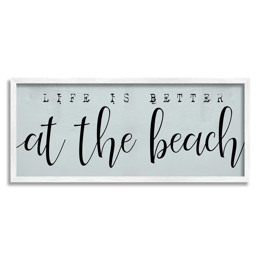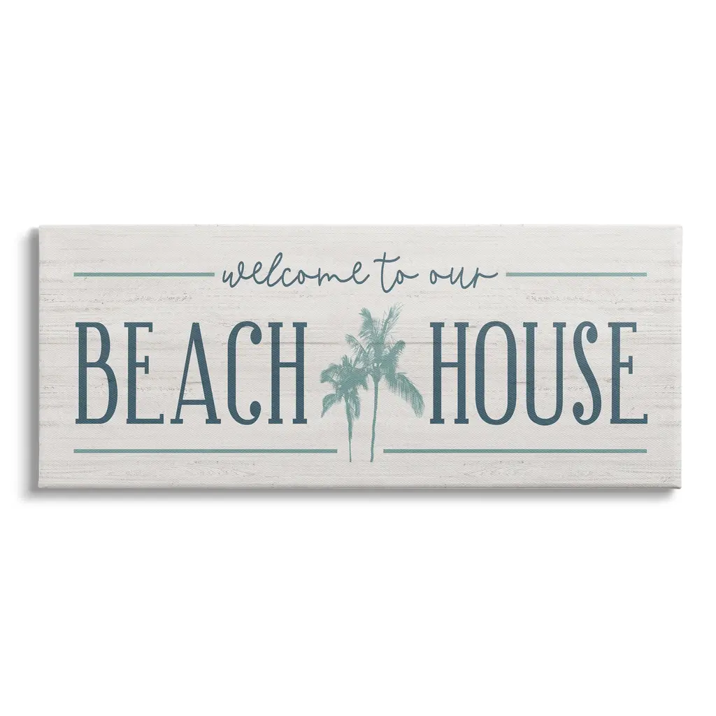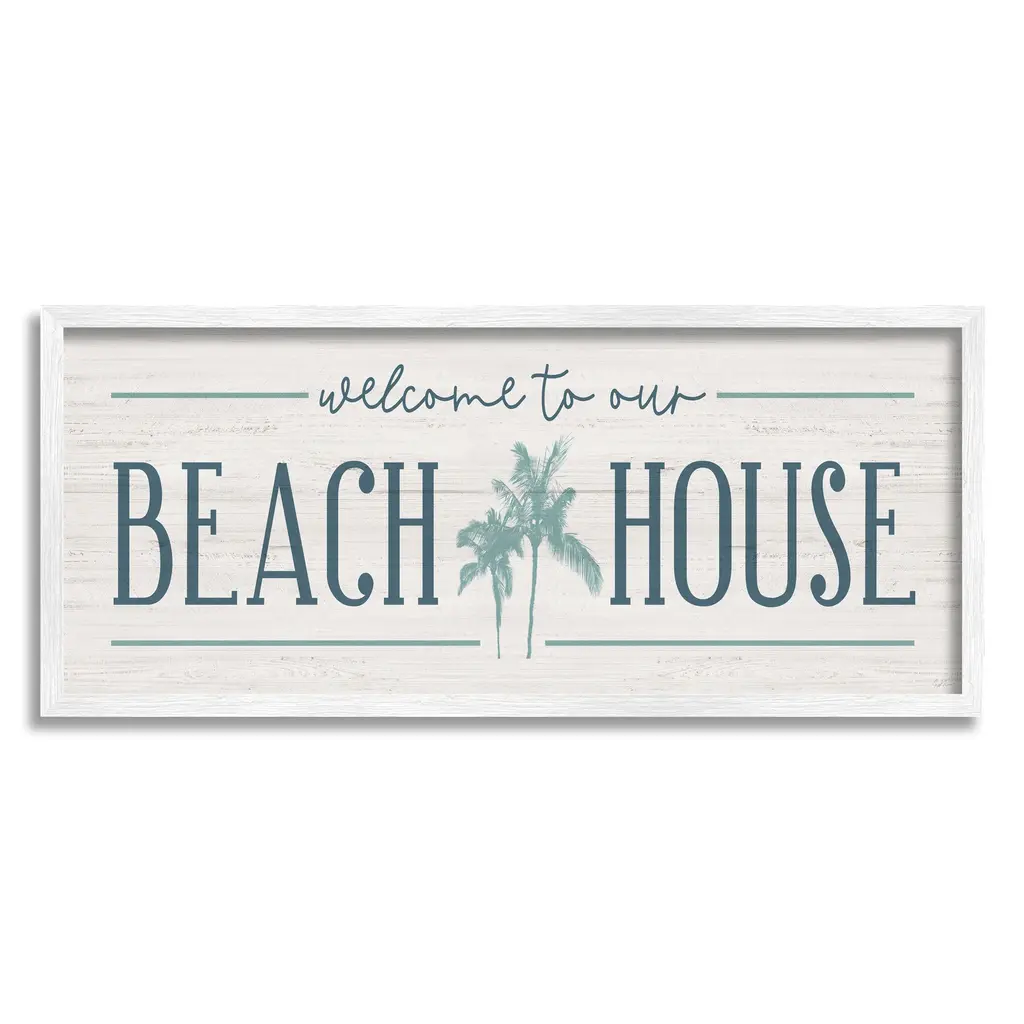 Stupell Welcome To Beach House Sign Blue Palm Trees Framed Wall Art - Green - 24 X 10 - Grey