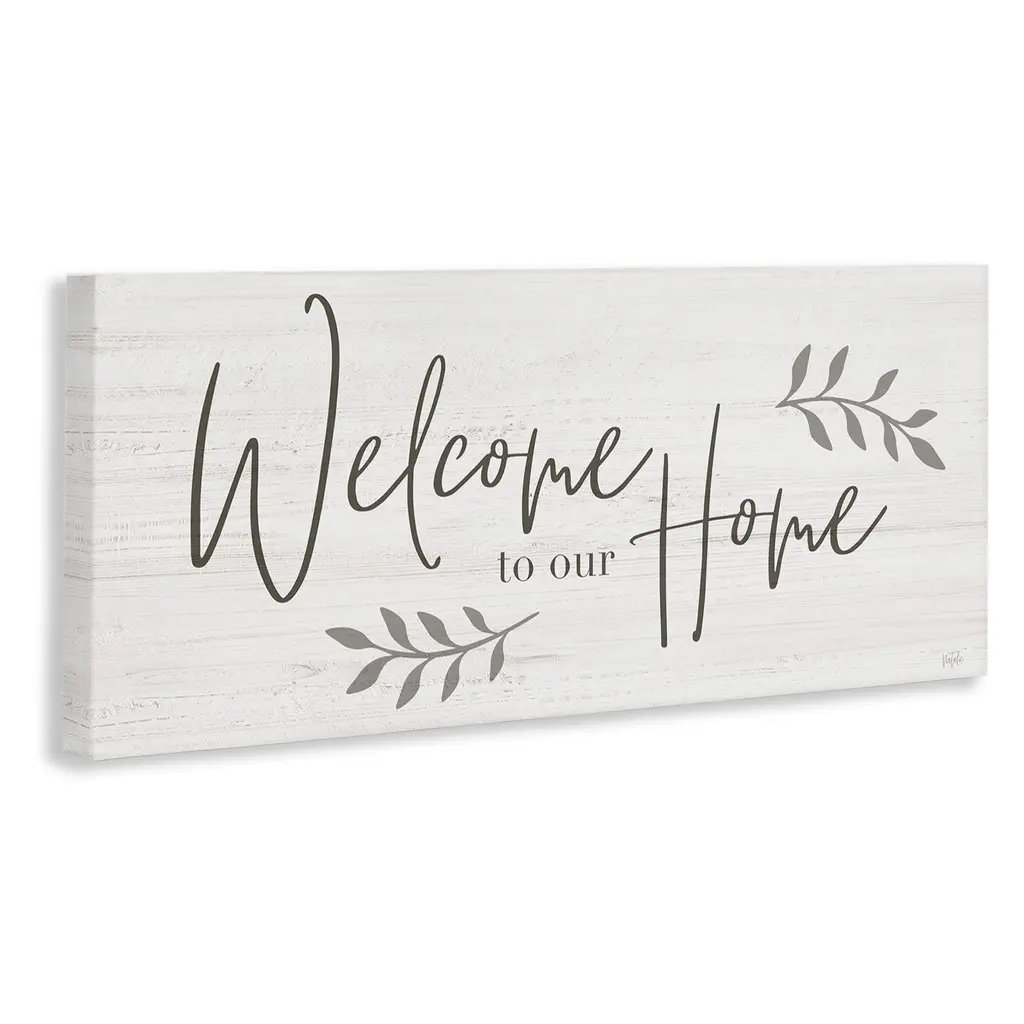 Proudly made in the USA, Our stretched canvas is created with the highest standards. We use only the highest quality inks and canvas on our in house Mimaki printers, and then hand cut and stretch each piece over a 1.5 inch thick wooden frame for hanging. The art comes ready to hang with no installation required.Features: Dimensions: 24 x 1.5 x 10 InchesStretched Canvas Sizes Include Standard: 24 x 1.5 x 10 Large: 30 x 1.5 x 13 X-Large: 40 x 1.5 x 17 Oversized: 48 x 1.5 x 20Wall Art is Ready to Hang - No Installation or Hardware Needed. For Easy Set Up Lean or Layer Artwork on Shelf or Against Wall.Our stretched canvas is created with the highest standards. We use only the highest quality inks and canvas on our in house Mimaki printers, and then hand cut and stretch each piece over a 1.5 inch thick wooden frame for hanging. Made In USA.Artwork Relates To: Country, Cottage, Botanical, Grain PatternDesign by Natalie CarpentieriLiving Room, Den, Hallway, Office, Entryway, Study, Dining Room or Bed Room.Text Includes: Welcome To Our Home