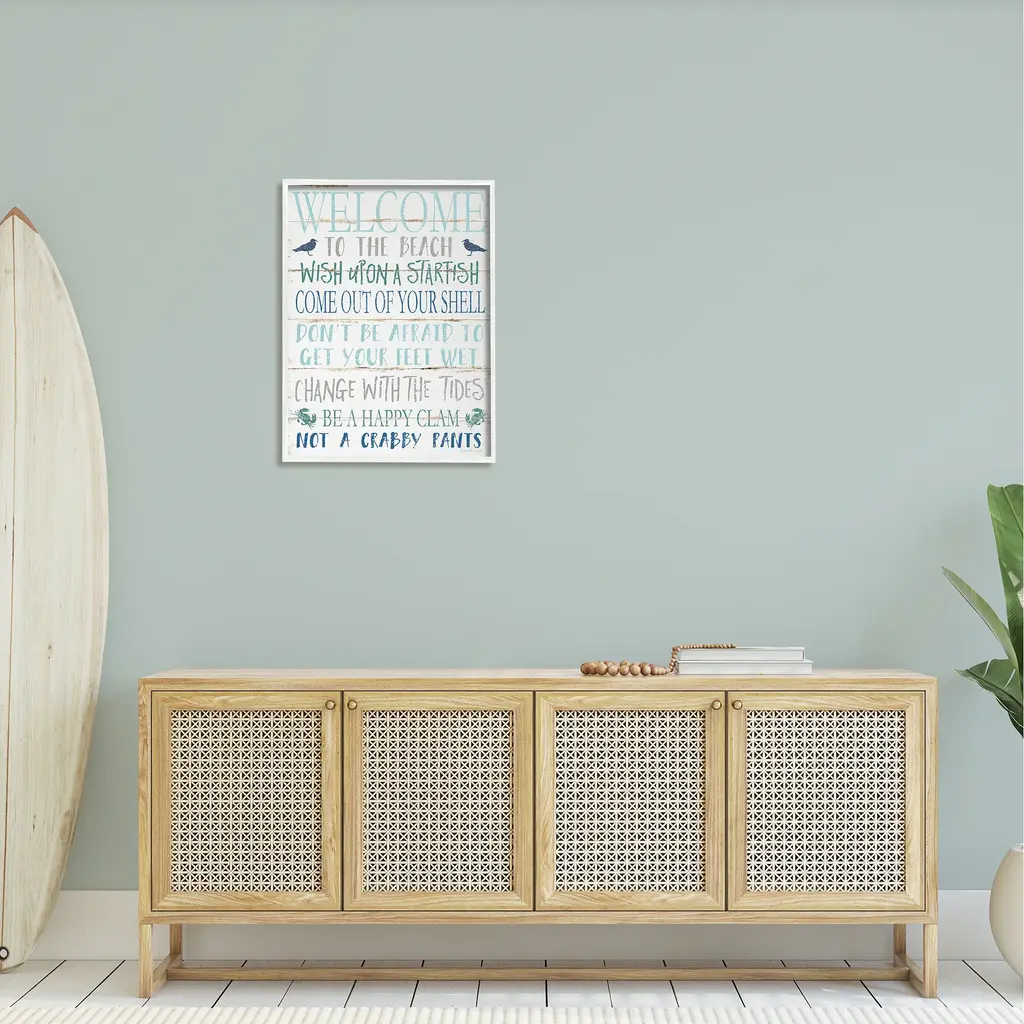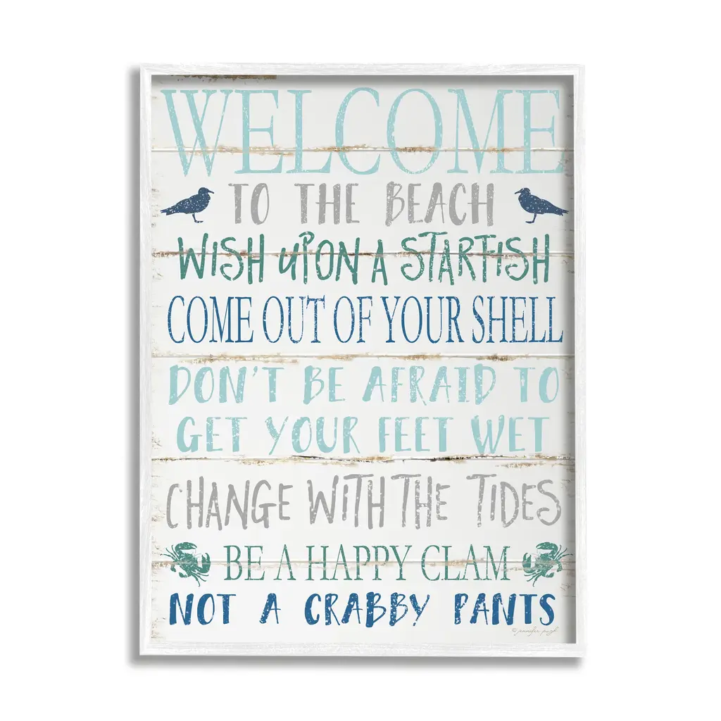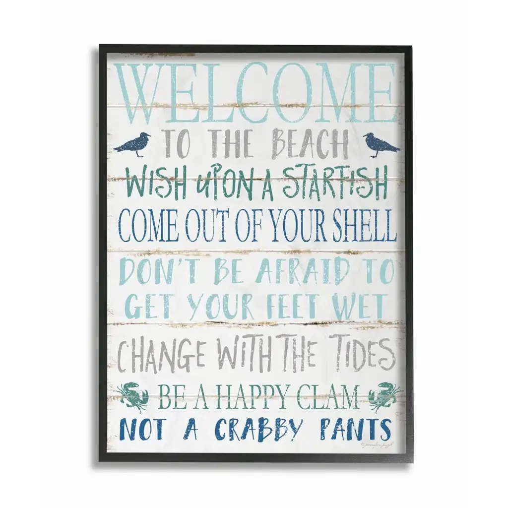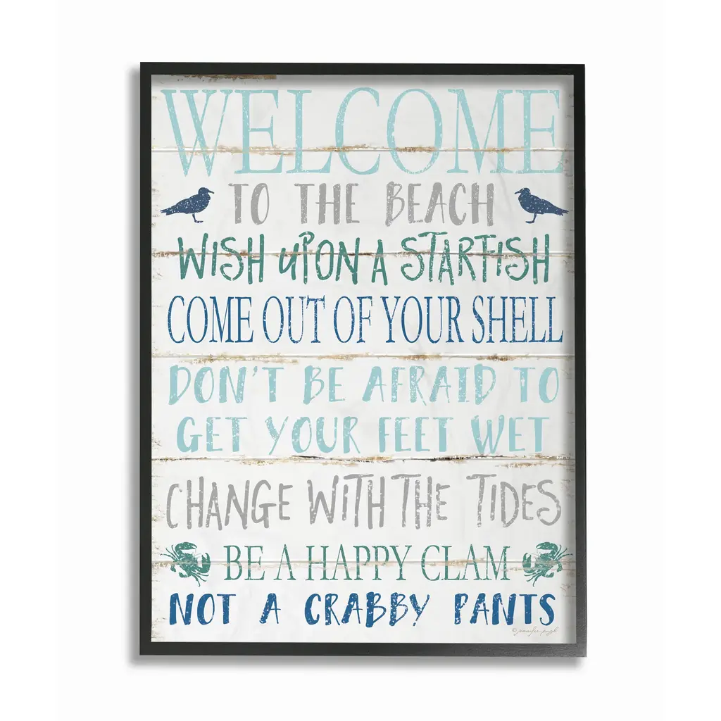 Stupell Welcome To The Beach Blue Aqua And White Planked Look Sign Framed Giclee Texturized Art By Jennifer Pugh - 11 X 14 - Black
