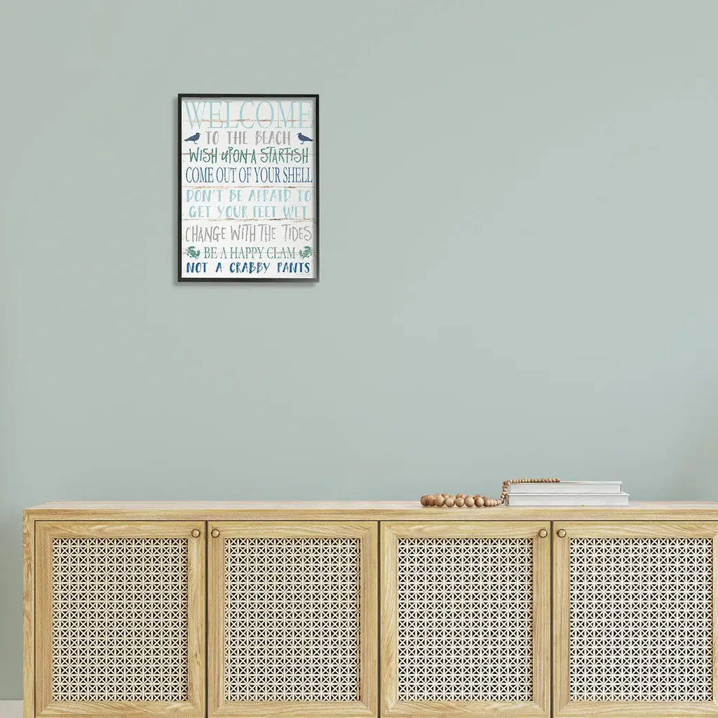 Stupell Welcome To The Beach Blue Aqua And White Planked Look Sign Framed Giclee Texturized Art By Jennifer Pugh - 16 X 20 - Black