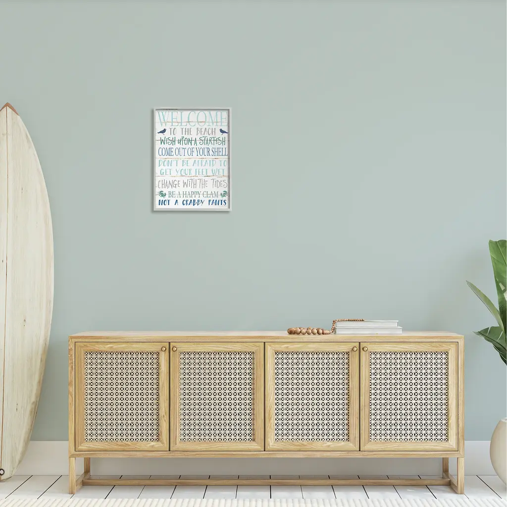 Stupell Welcome To The Beach Blue Aqua And White Planked Look Sign Framed Giclee Texturized Art By Jennifer Pugh - 16 X 20 - Grey