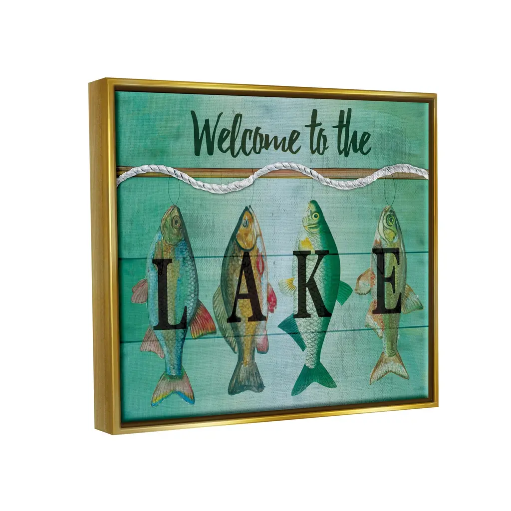 Elevate your home or office to the next level with Stupell Framed Floating Canvas Wall Art. Our premium hand-stretched canvas is mounted securely into a sturdy lightweight frame. The museum-style gap between the wrapped canvas and the box frame gives the illusion of floating artwork. Stupell Wall Art is made in the USA.Features: Dimensions: 21 x 1.7 x 17 Frame, 20 x 1.5 x 16 Canvas ArtFloating Frame Sizes Include Standard: 21 x 1.7 x 17 Oversized: 31 x 1.7 x 25Wall Art is Ready to Hang - No Installation or Hardware Needed. For Easy Set Up Lean or Layer Artwork on Shelf or Against Wall.Our elevated 1.7" Thick Floating Frame is the perfect complement to our canvas style Wall Art. We use only the highest quality inks in house with industry leading printing solutions. Canvas is hand stretched over a durable wood foundation and then mounted securly into a Modern Box Frame. Made in the USA.Artwork Relates To: Animal, Fish, Sea Life, Aquatic, Water, Sign, Angler, Fishing, Welcome To The LakeDesign by ND Art
