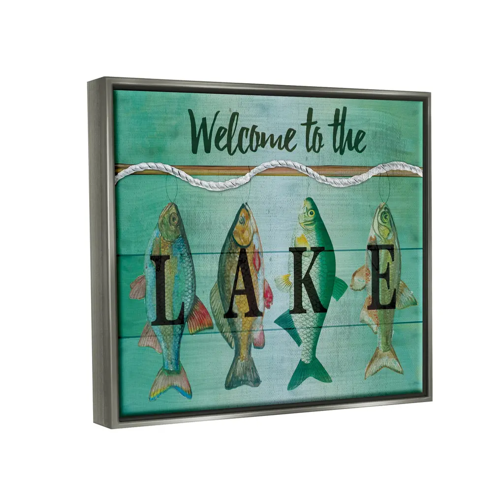 Elevate your home or office to the next level with Stupell Framed Floating Canvas Wall Art. Our premium hand-stretched canvas is mounted securely into a sturdy lightweight frame. The museum-style gap between the wrapped canvas and the box frame gives the illusion of floating artwork. Stupell Wall Art is made in the USA.Features: Dimensions: 21 x 1.7 x 17 Frame, 20 x 1.5 x 16 Canvas ArtFloating Frame Sizes Include Standard: 21 x 1.7 x 17 Oversized: 31 x 1.7 x 25Wall Art is Ready to Hang - No Installation or Hardware Needed. For Easy Set Up Lean or Layer Artwork on Shelf or Against Wall.Our elevated 1.7" Thick Floating Frame is the perfect complement to our canvas style Wall Art. We use only the highest quality inks in house with industry leading printing solutions. Canvas is hand stretched over a durable wood foundation and then mounted securly into a Modern Box Frame. Made in the USA.Artwork Relates To: Animal, Fish, Sea Life, Aquatic, Water, Sign, Angler, Fishing, Welcome To The LakeDesign by ND Art