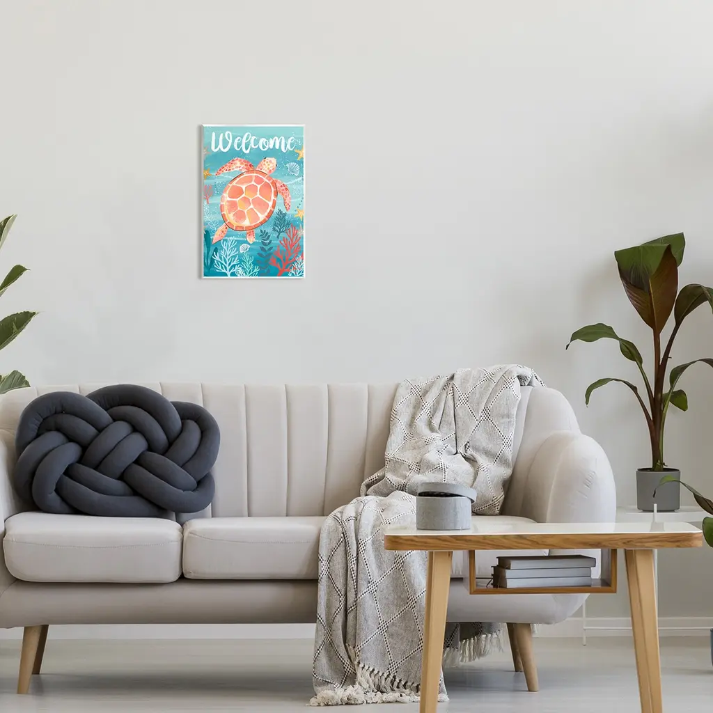 Stupell Welcome Underwater Turtle Scene Wall Plaque Art Design By Sharon Lee - 10 X 15