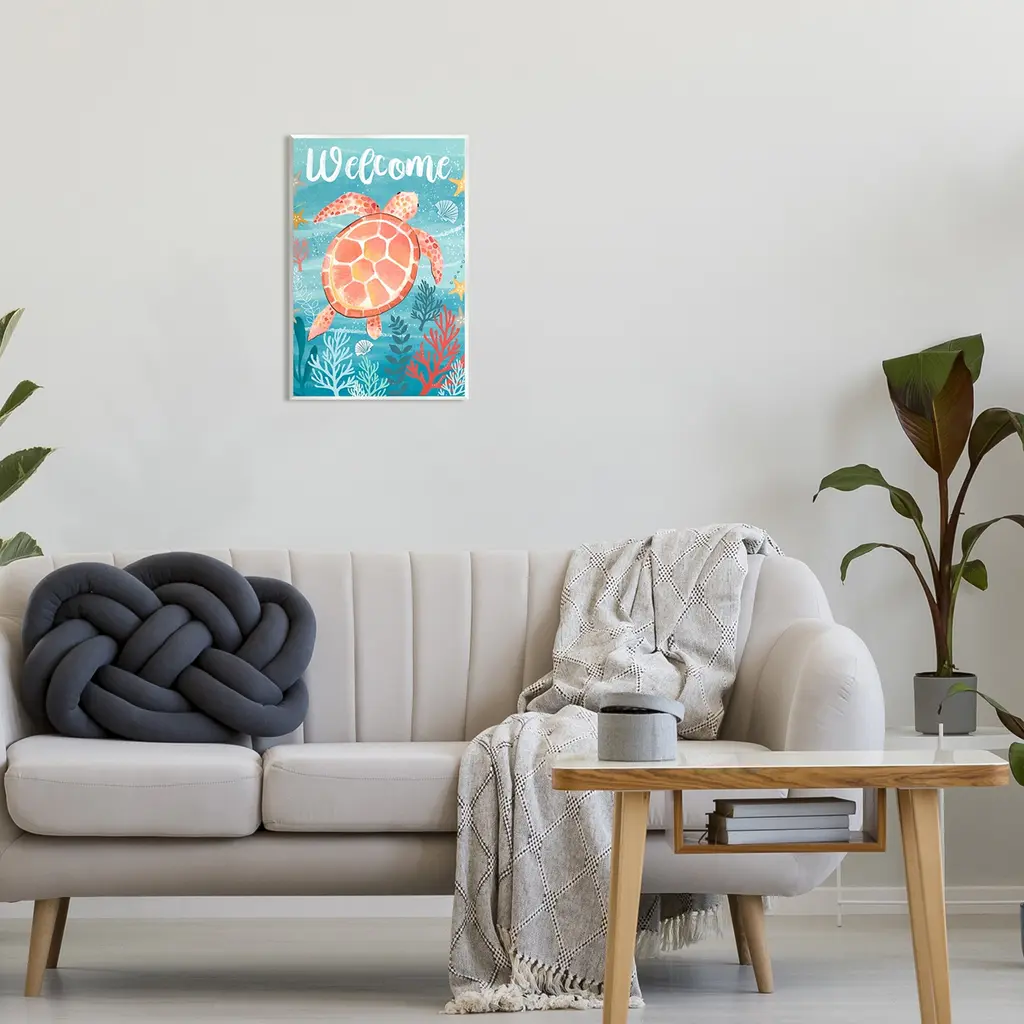 Stupell Welcome Underwater Turtle Scene Wall Plaque Art Design By Sharon Lee - 13 X 19