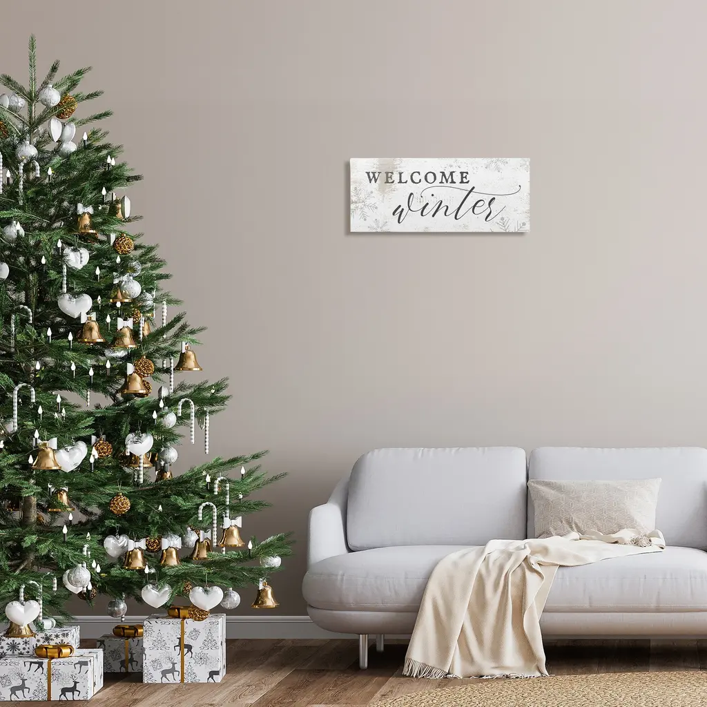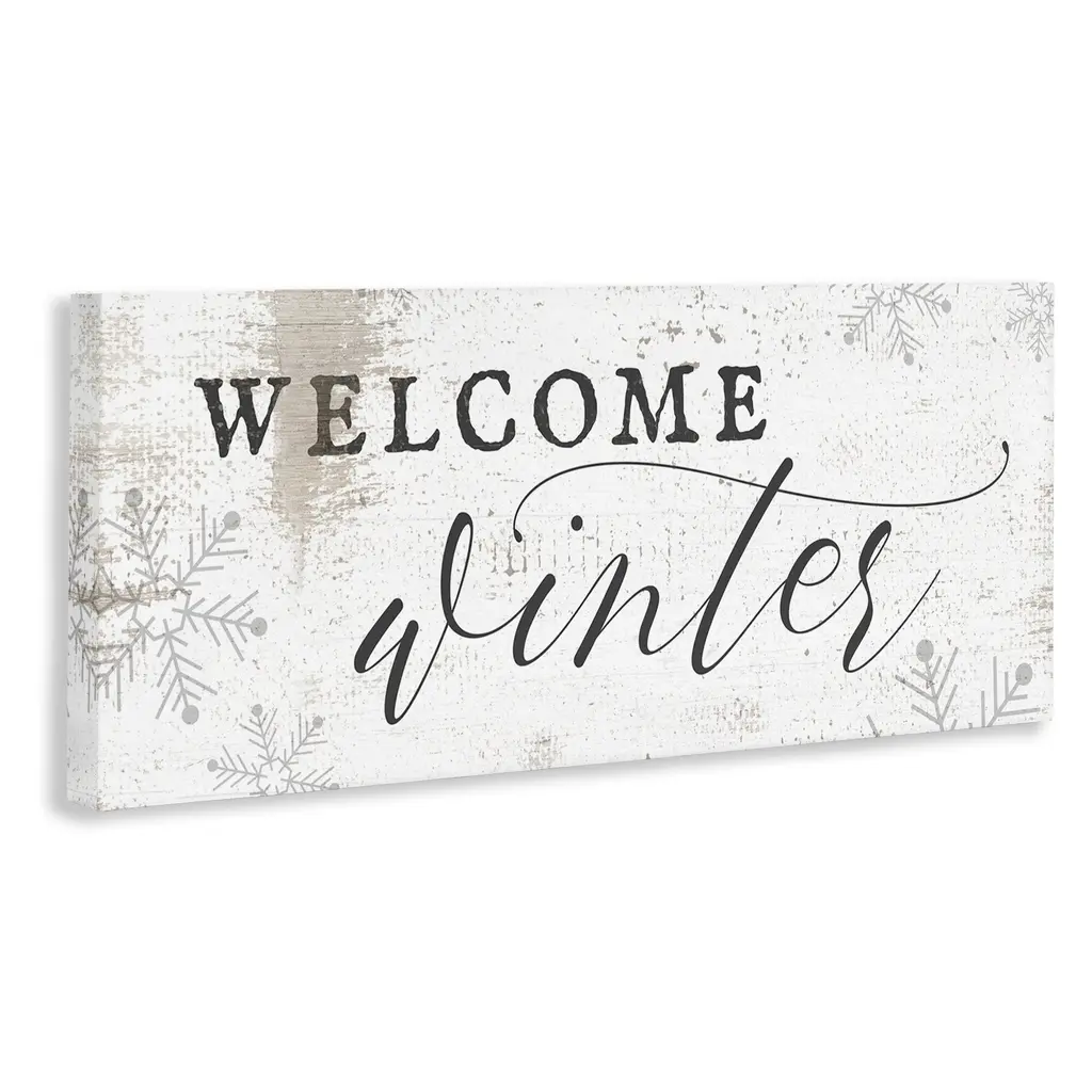 Stupell Welcome Winter Phrase Geometric Snowflake Pattern Canvas Wall Art - 10 X 24