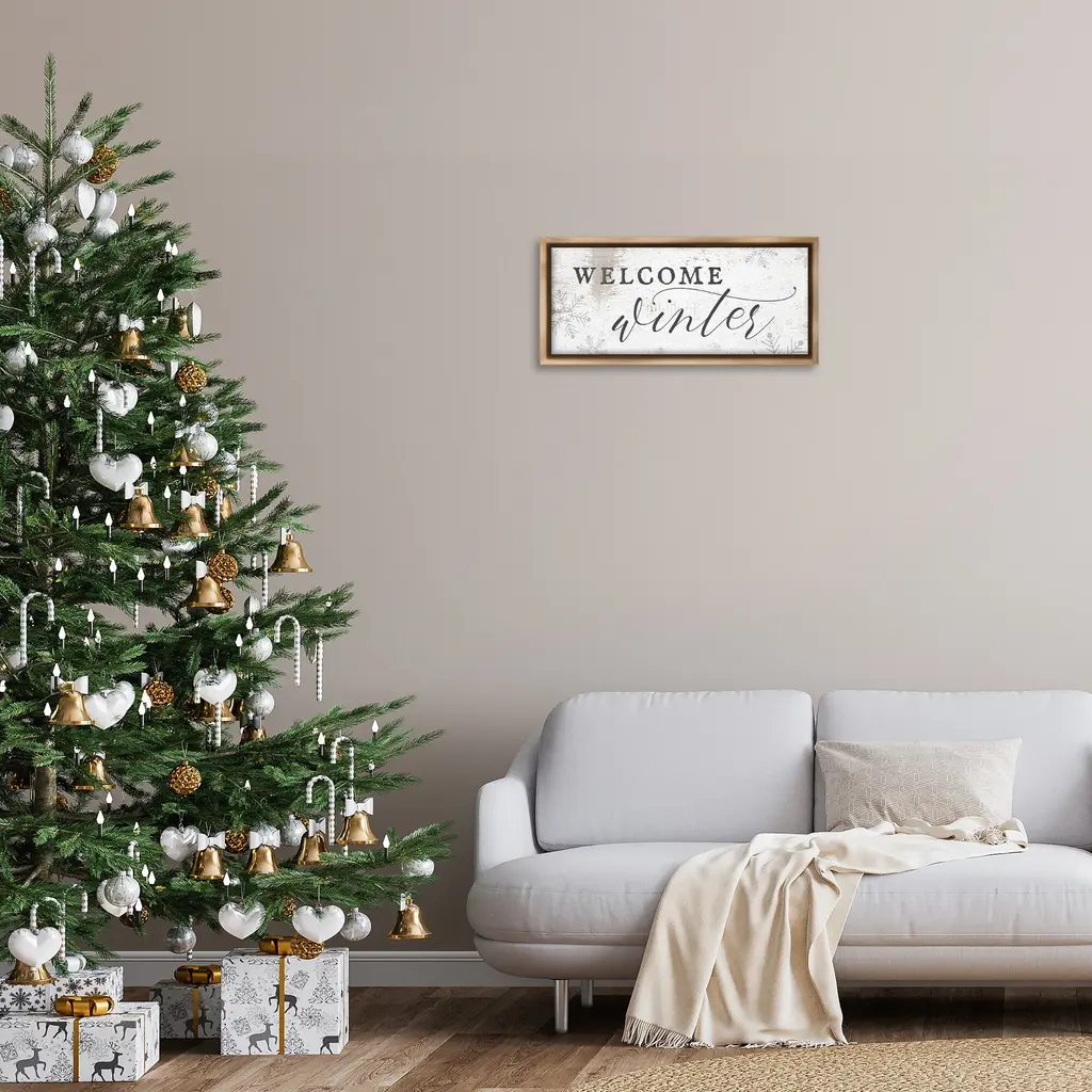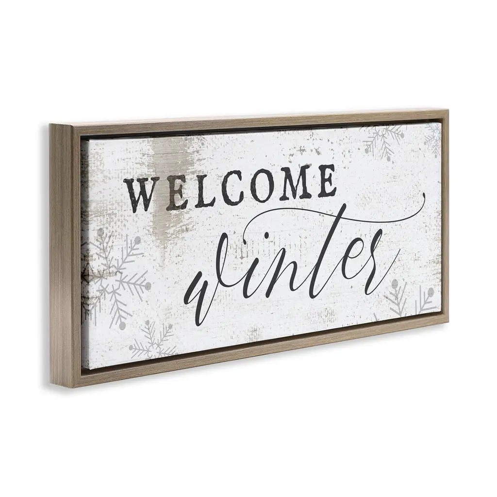 Stupell Welcome Winter Snowflake Pattern Framed Floater Canvas Wall Art Design By Daphne Polselli - 25 X 11 - Brown