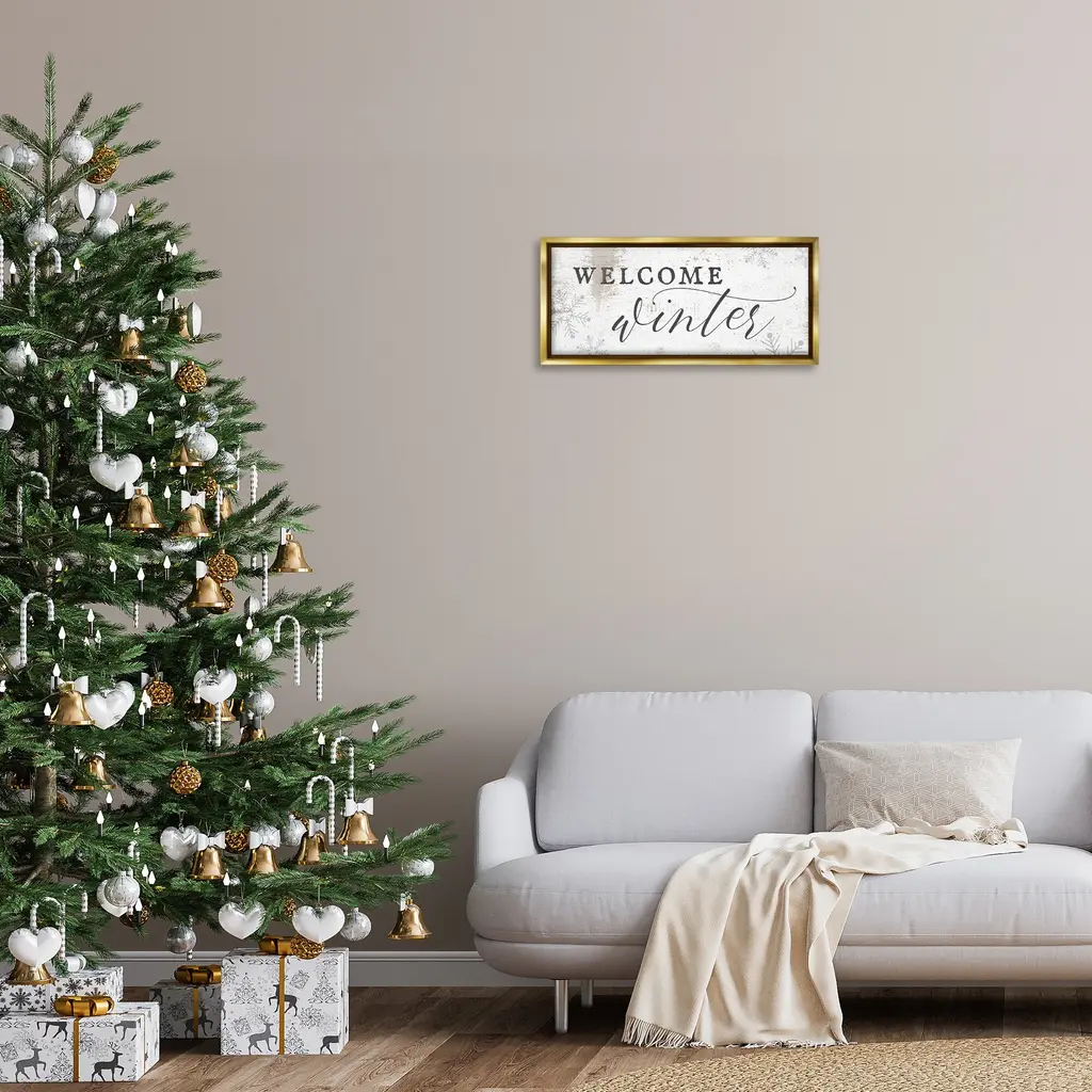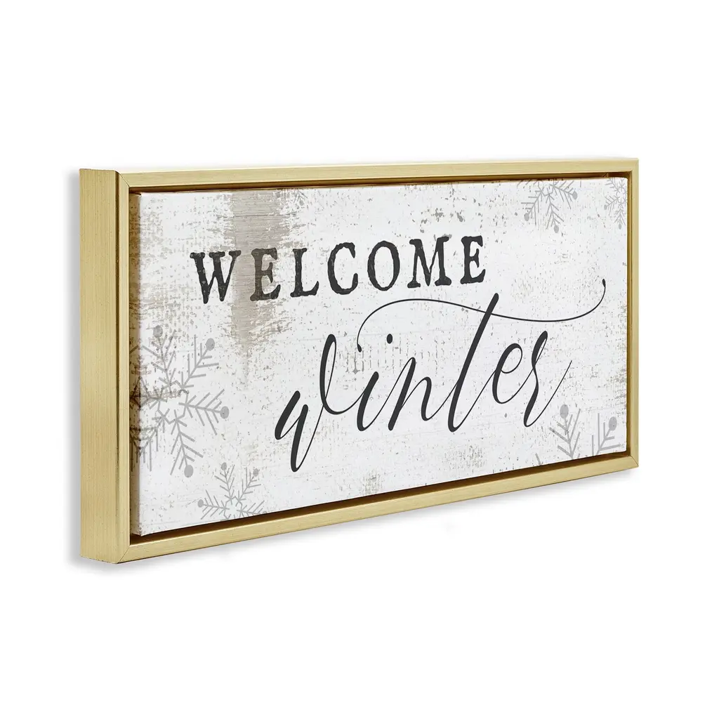 Stupell Welcome Winter Snowflake Pattern Framed Floater Canvas Wall Art Design By Daphne Polselli - 25 X 11 - Gold