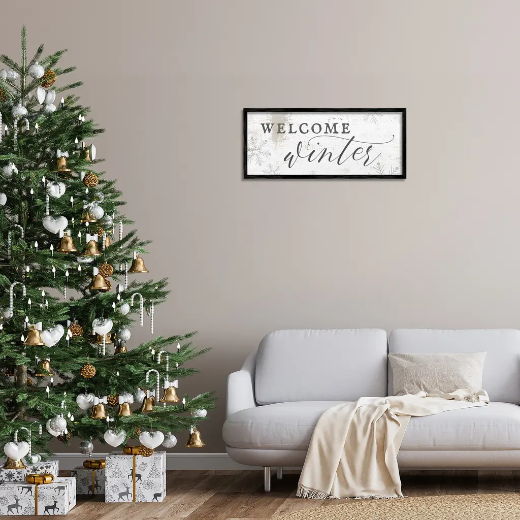 Stupell Welcome Winter Snowflake Pattern Framed Giclee Art Design By Daphne Polselli - 30 X 13 - Black