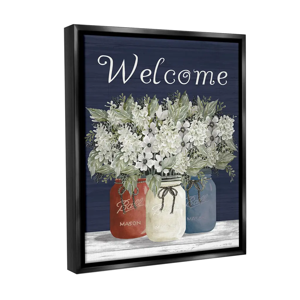 Elevate your home or office to the next level with Stupell Framed Floating Canvas Wall Art. Our premium hand-stretched canvas is mounted securely into a sturdy lightweight frame. The museum-style gap between the wrapped canvas and the box frame gives the illusion of floating artwork. Stupell Wall Art is made in the USA.Features: Dimensions: 17 x 1.7 x 21 Frame, 16 x 1.5 x 20 Canvas ArtFloating Frame Canvas Products are available in sizes 17"x21" and 25"x31". All Floating Frame Canvas Products have a 1.7" Depth.Wall Art is Ready to Hang with Hardware Free Hanging. No Installation required. For Easy Set Up Lean or Layer Artwork on Shelf or Against Wall. Artwork is Permently Fixed into the Frame.Our elevated 1.7" Thick Floating Frame is the perfect complement to our canvas style Wall Art. We use only the highest quality inks in house with industry leading printing solutions. Canvas is hand stretched over a durable wood foundation and then mounted securly into a Modern Box Frame. Made in the USA.Artwork Relates To: Flower, Plant, Petal, Botanical, Floral, Cottage, Country, Jar, WelcomeDesign by Cindy Jacobs