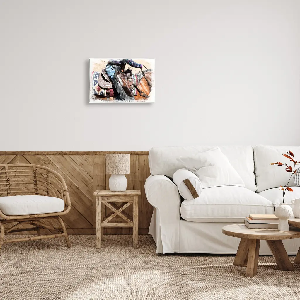 Our wall plaques start as high-quality lithograph prints mounted on durable 0.5-inch thick MDF wood. Each piece is hand finished and comes with a fresh layer of white foil on the sides to give it a crisp, clean look. Plaques arrive ready to hang without installation and come with removable plastic corners to keep them from damage in transit. Stupell Wall Art is made in the USA.Features: Dimensions: 15 x 0.5 x 10 InchesWall Plaque Product Sizes Include 15"x10" and 19"x13". All wall plaque products have a 0.5" Depth. Wall Art is Ready to Hang with Hardware Free Hanging. No installation required. For Easy Set Up Lean or Layer Artwork on Shelf or Against Wall.All of our wall plaques start off as high quality lithograph prints that are then mounted on durable 0.5 inch thick MDF wood. Each piece is hand finished and comes with a fresh layer of foil on the sides to give it a crisp clean look. Made In USA.Artwork Relates To: Animal, Horse, Mammal, Saddle, Equestrian, Person, Rodeo, Country, Southwestern, CowboyDesign by Jerry Cowart