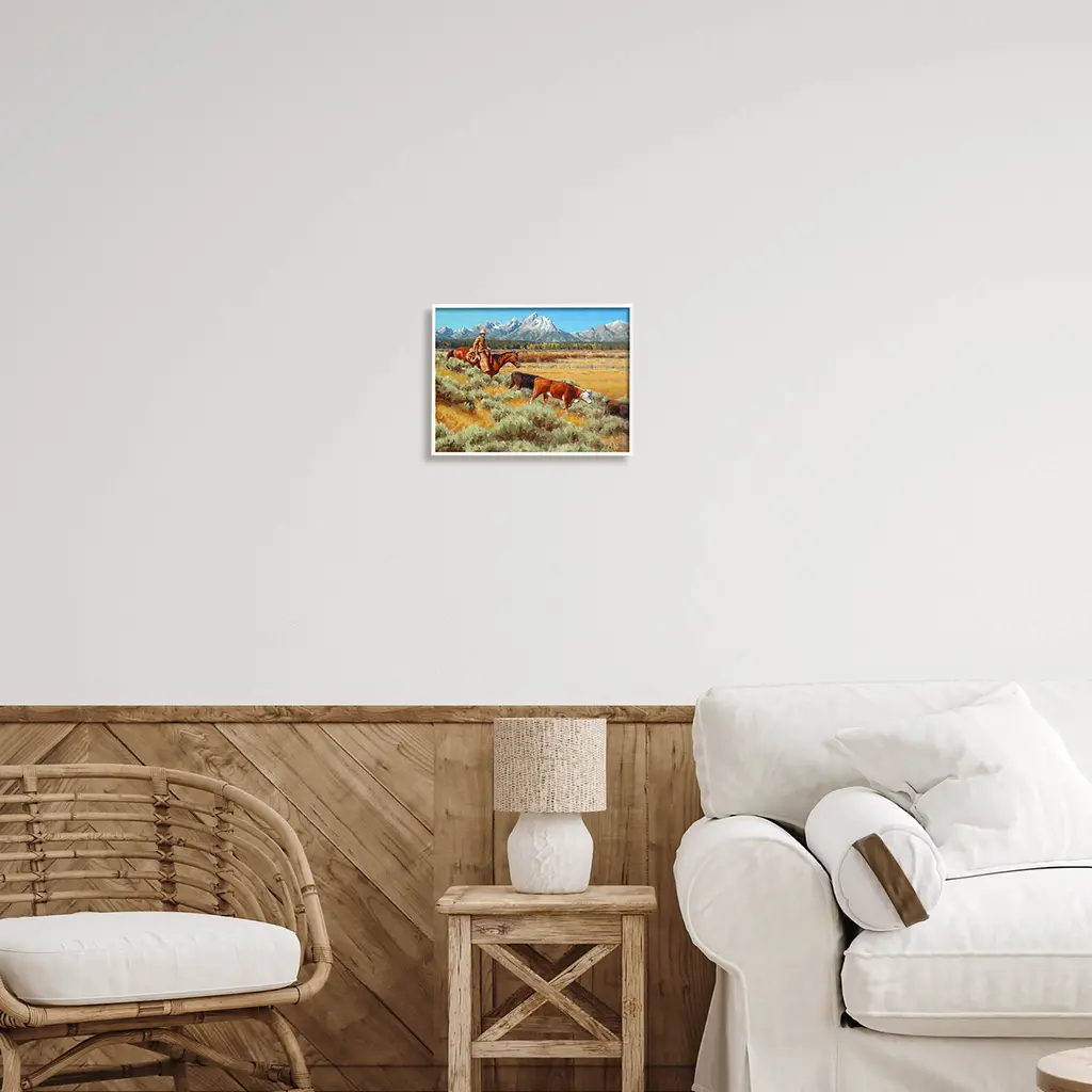 Our Framed Giclee Wall Art adds a touch of class to any space in your home or office. Frames are available in three alluring styles: black, gray farmhouse and white. Our textured artwork will add more depth and dimension to any space. Each piece is mounted with a 1.5 inch thick wood grain frame that is ready to hang! Looking for a statement piece? We have oversized artwork available.Features: Dimensions: 14 x 1.5 x 11 FramedFramed Giclee Sizes Include Standard: 14 x 1.5 x 11 Large: 20 x 1.5 x 16 Oversized: 30 x 1.5 x 24Wall Art is Ready to Hang - No Installation or Hardware Needed. For Easy Set Up Lean or Layer Artwork on Shelf or Against Wall.Our giclée prints are carefully mounted on a durable MDF backing, and then perfectly finished in a 1.5 inch thick woodgrain frame. Mounted frame colors include black, gray farmhouse and white. Made In USA.Artwork Relates To: Person, Cow, Mammal, Animal, Cattle, Nature, Ranch, Countryside, Farm, Rural, Horse, Grassland, Field, PastureDesign by Jimmy Dyer