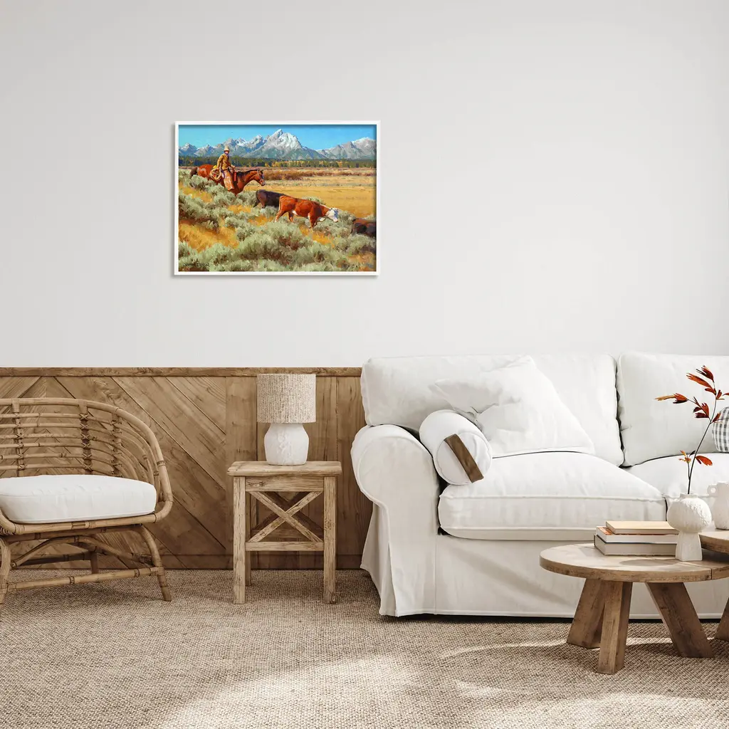 Our Framed Giclee Wall Art adds a touch of class to any space in your home or office. Frames are available in three alluring styles: black, gray farmhouse and white. Our textured artwork will add more depth and dimension to any space. Each piece is mounted with a 1.5 inch thick wood grain frame that is ready to hang! Looking for a statement piece? We have oversized artwork available.Features: Dimensions: 14 x 1.5 x 11 FramedFramed Giclee Sizes Include Standard: 14 x 1.5 x 11 Large: 20 x 1.5 x 16 Oversized: 30 x 1.5 x 24Wall Art is Ready to Hang - No Installation or Hardware Needed. For Easy Set Up Lean or Layer Artwork on Shelf or Against Wall.Our giclée prints are carefully mounted on a durable MDF backing, and then perfectly finished in a 1.5 inch thick woodgrain frame. Mounted frame colors include black, gray farmhouse and white. Made In USA.Artwork Relates To: Person, Cow, Mammal, Animal, Cattle, Nature, Ranch, Countryside, Farm, Rural, Horse, Grassland, Field, PastureDesign by Jimmy Dyer