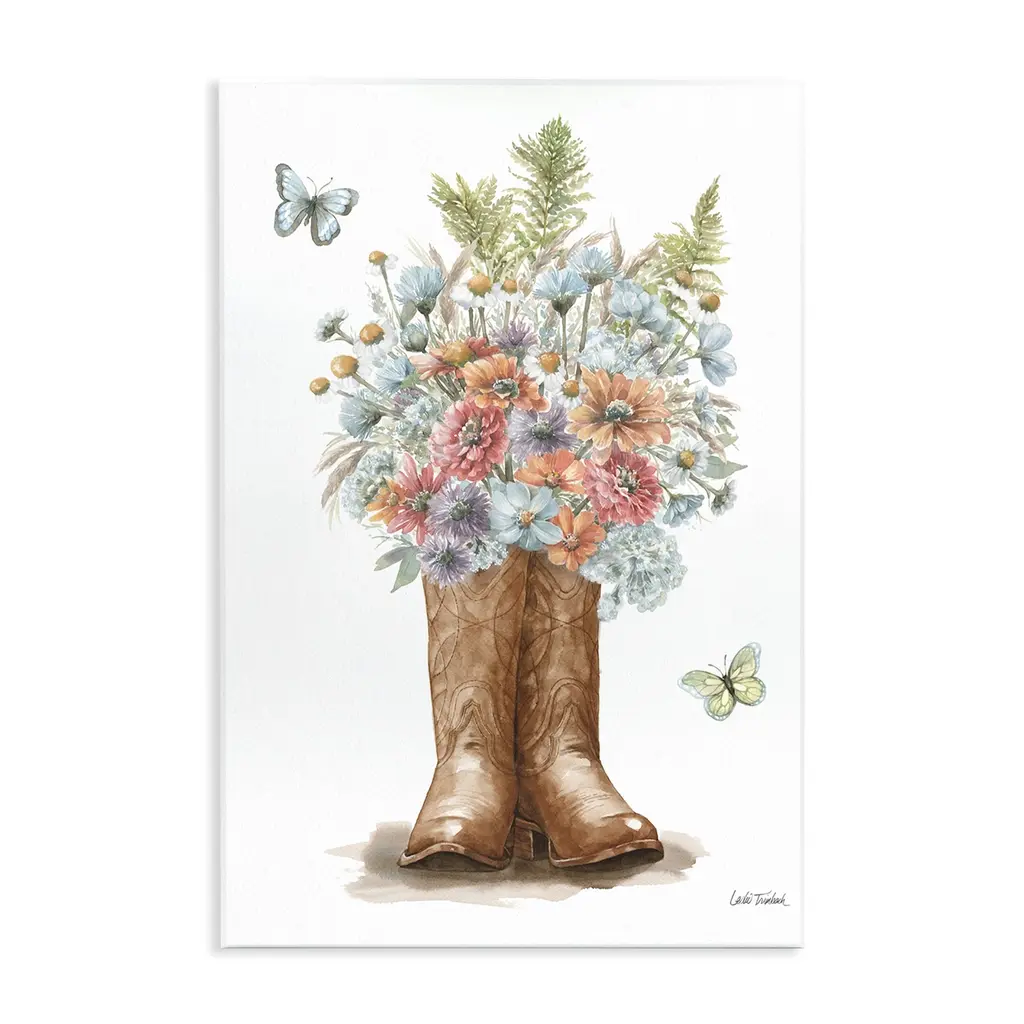 Our wall plaques start as high-quality lithograph prints mounted on durable 0.5-inch thick MDF wood. Each piece is hand finished and comes with a fresh layer of white foil on the sides to give it a crisp, clean look. Plaques arrive ready to hang without installation and come with removable plastic corners to keep them from damage in transit. Stupell Wall Art is made in the USA.Features: Dimensions: 10 x 0.5 x 15 InchesWall Plaque Product Sizes Include 10"x15" and 13"x19". All wall plaque products have a 0.5" Depth. Wall Art is Ready to Hang with Hardware Free Hanging. No installation required. For Easy Set Up Lean or Layer Artwork on Shelf or Against Wall.All of our wall plaques start off as high quality lithograph prints that are then mounted on durable 0.5 inch thick MDF wood. Each piece is hand finished and comes with a fresh layer of foil on the sides to give it a crisp clean look. Made In USA.Artwork Relates To: Plant, Flower, Bouquet, Floral, Pattern, Cowboy Boot, Dahlia, Country, ButterflyDesign by Leslie Trimbach