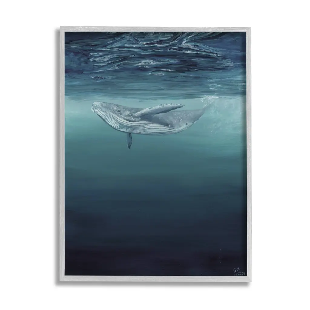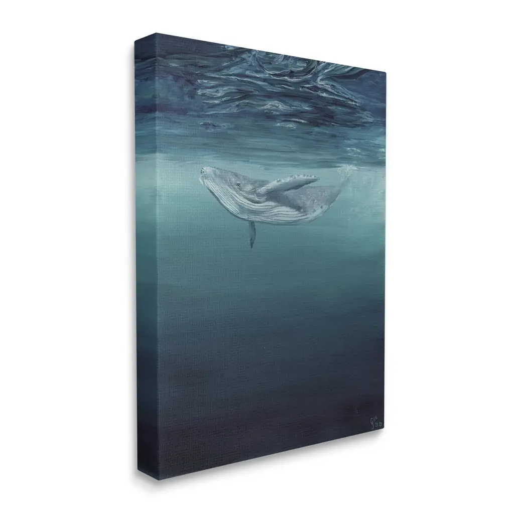 We create our stretched canvas to the highest standards. Using only the highest quality inks and canvas on Mimaki printers, we hand-cut and stretch each piece over a 1.5-inch thick wooden frame for hanging. As a result, the art comes ready to hang on the sturdy ledge with no installation required. Stupell Wall Art is made in the USA.Features: Dimensions: 16 x 1.5 x 20 InchesStretched Canvas Sizes Include Standard: 16 x 1.5 x 20 Large: 20 x 1.5 x 30 X-Large: 30 x 1.5 x 40 Oversized: 36 x 1.5 x 48Wall Art is Ready to Hang with Hardware Free Hanging. No installation required. For Easy Set Up Lean or Layer Artwork on Shelf or Against Wall.Our stretched canvas is created with the highest standards. We use only the highest quality inks and canvas on our in house Mimaki printers, and then hand cut and stretch each piece over a 1.5 inch thick wooden frame for hanging. Made In USA.Artwork Relates To: Animal, Mammal, Sea Life, Whale, Water, Sea, Swimming, Aquatic, UnderwaterDesign by Georgie Harrison