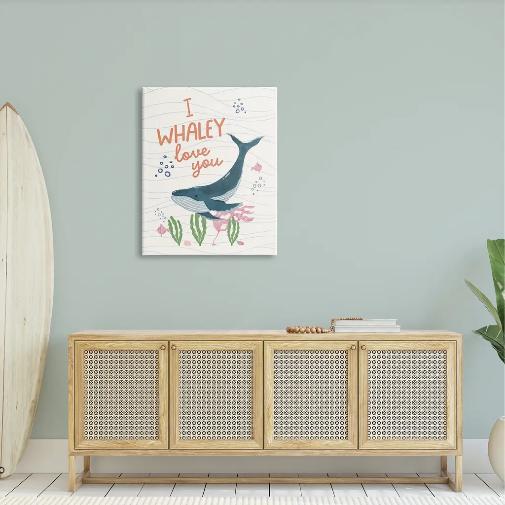 Stupell Whaley Love You Typography Quirky Ocean Whale Canvas Wall Art - 30 X 40