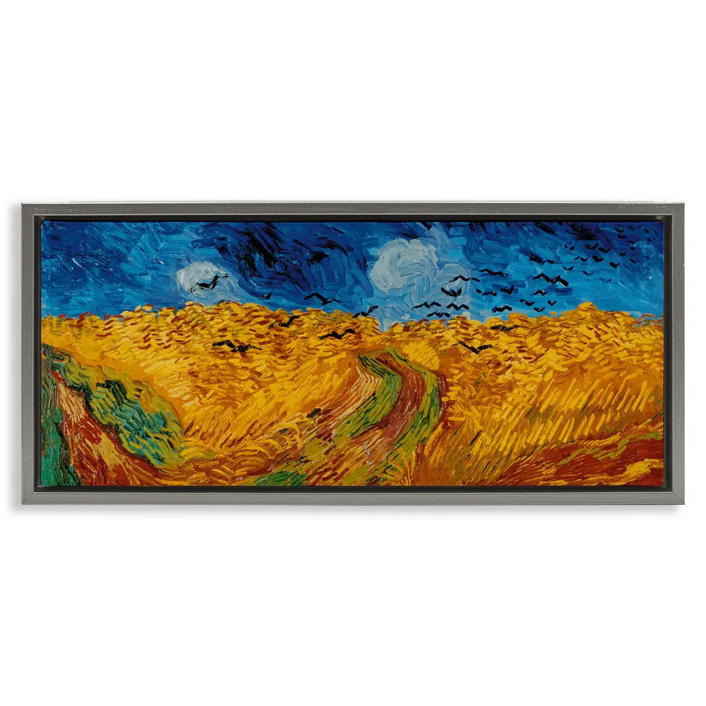 Stupell Wheat Field With Crows Classic Framed Floater Canvas Wall Art Design By Vincent Van Gogh - 31 X 14 - Brown
