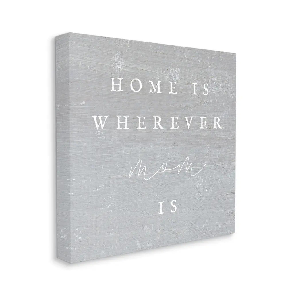 We create our stretched canvas to the highest standards. Using only the highest quality inks and canvas on Mimaki printers, we hand-cut and stretch each piece over a 1.5-inch thick wooden frame for hanging. As a result, the art comes ready to hang on the sturdy ledge with no installation required. Stupell Wall Art is made in the USA.Features: Dimensions: 17 x 1.5 x 17 InchesStretched Canvas Sizes Include Standard: 17 x 1.5 x 17 Large: 24 x 1.5 x 24 X-Large: 30 x 1.5 x 30 Oversized: 36 x 1.5 x 36Wall Art is Ready to Hang with Hardware Free Hanging. No installation required. For Easy Set Up Lean or Layer Artwork on Shelf or Against Wall.Our stretched canvas is created with the highest standards. We use only the highest quality inks and canvas on our in house Mimaki printers, and then hand cut and stretch each piece over a 1.5 inch thick wooden frame for hanging. Made In USA.Artwork Relates To: Phrase, Rustic, Family, Home Is Wherever Mom IsDesign by Lil' Rue