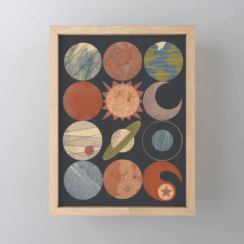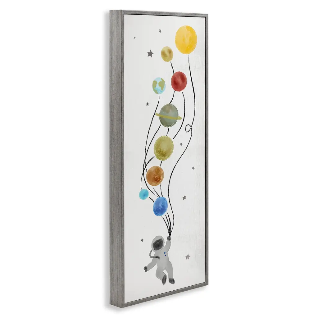 Add dimension to any room with our textured Framed Giclee Artwork. Our framed artwork is securely mounted into a 1.5-inch thick wood grain frame and ready to hang. Frames are available in three alluring styles: black, gray farmhouse and white. In addition, you should check out our oversized options if you want a statement piece. Stupell Wall Art is made in the USA.Features: Dimensions: 10 x 1.5 x 24 FramedFramed Giclee Product Sizes include 10"x24" and 13"x30". All Framed Giclee products have a 1.5" Depth.Wall Art is Ready to Hang with Hardware Free Hanging. No installation required. For Easy Set Up Lean or Layer Artwork on Shelf or Against Wall.Our giclée prints are carefully mounted on a durable MDF backing, and then perfectly finished in a 1.5 inch thick woodgrain frame. Mounted frame colors include black, gray farmhouse and white. Made In USA.Artwork Relates To: Outer Space, Astronaut, Planets, Kids, Stars, Educational, BalloonDesign by Daphne Polselli