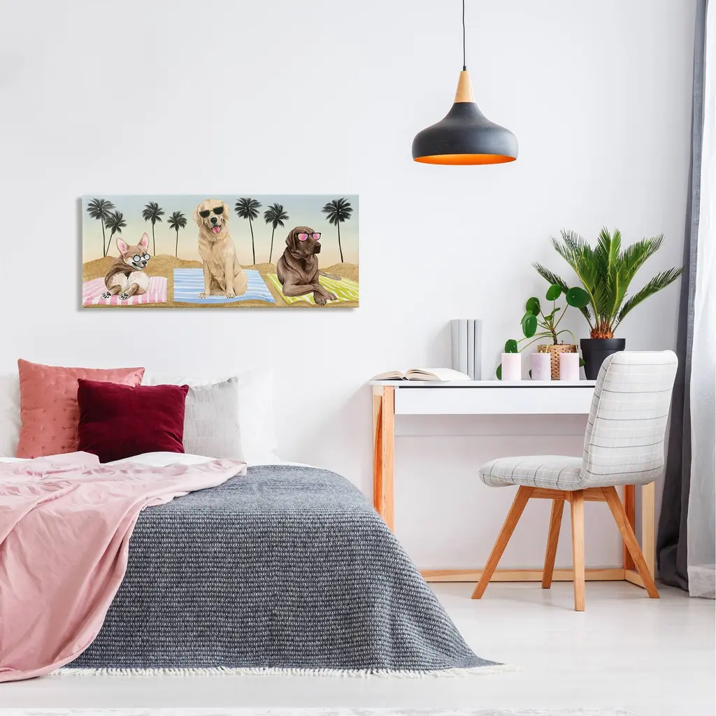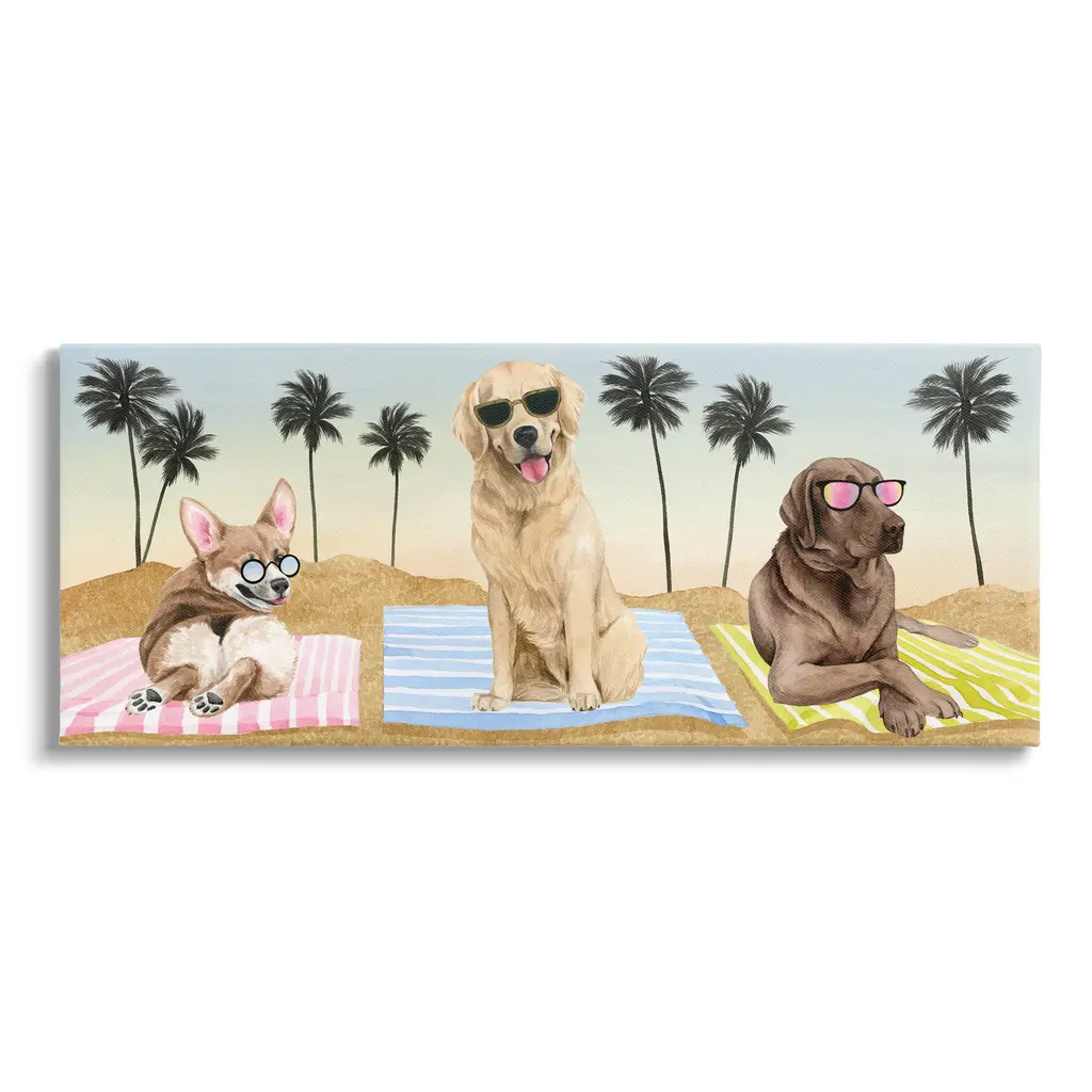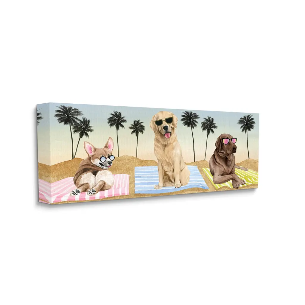 Stupell Whimsical Dogs Sunglasses Beach Towels Palm Trees Canvas Wall Art - Multi-Color - 30 X 13