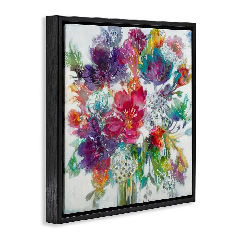 Elevate your home or office to the next level with Stupell Framed Floating Canvas Wall Art. Our premium hand-stretched canvas is mounted securely into a sturdy lightweight frame. The museum-style gap between the wrapped canvas and the box frame gives the illusion of floating artwork. Stupell Wall Art is made in the USA.Features: Dimensions: 18 x 1.7 x 18 Frame, 17 x 1.5 x 17 Canvas ArtFloating Frame Canvas Products are available in sizes 18"x18" and 25"x25". All Floating Frame Canvas Products have a 1.7" Depth.Wall Art is Ready to Hang with Hardware Free Hanging. No Installation required. For Easy Set Up Lean or Layer Artwork on Shelf or Against Wall. Artwork is Permently Fixed into the Frame.Our elevated 1.7" Thick Floating Frame is the perfect complement to our canvas style Wall Art. We use only the highest quality inks in house with industry leading printing solutions. Canvas is hand stretched over a durable wood foundation and then mounted securly into a Modern Box Frame. Made in the USA.Artwork Relates To: Abstract, Floral, Flower, Painting, BouquetDesign by Liz Jardine