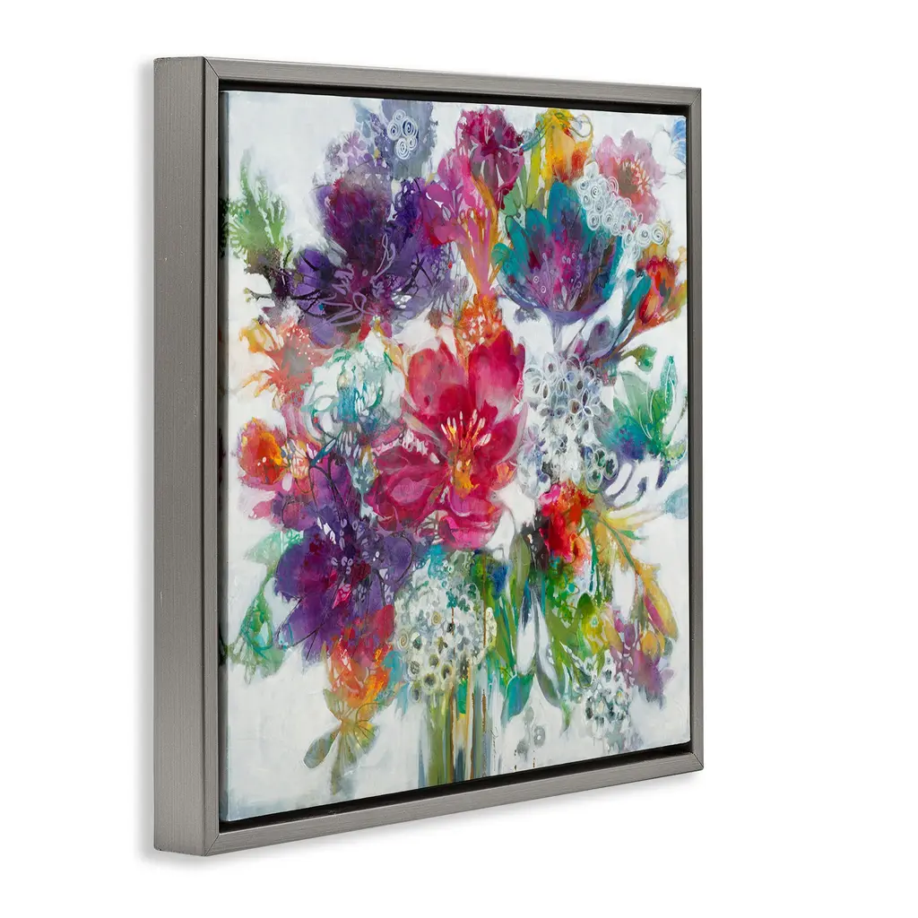 Elevate your home or office to the next level with Stupell Framed Floating Canvas Wall Art. Our premium hand-stretched canvas is mounted securely into a sturdy lightweight frame. The museum-style gap between the wrapped canvas and the box frame gives the illusion of floating artwork. Stupell Wall Art is made in the USA.Features: Dimensions: 18 x 1.7 x 18 Frame, 17 x 1.5 x 17 Canvas ArtFloating Frame Canvas Products are available in sizes 18"x18" and 25"x25". All Floating Frame Canvas Products have a 1.7" Depth.Wall Art is Ready to Hang with Hardware Free Hanging. No Installation required. For Easy Set Up Lean or Layer Artwork on Shelf or Against Wall. Artwork is Permently Fixed into the Frame.Our elevated 1.7" Thick Floating Frame is the perfect complement to our canvas style Wall Art. We use only the highest quality inks in house with industry leading printing solutions. Canvas is hand stretched over a durable wood foundation and then mounted securly into a Modern Box Frame. Made in the USA.Artwork Relates To: Abstract, Floral, Flower, Painting, BouquetDesign by Liz Jardine