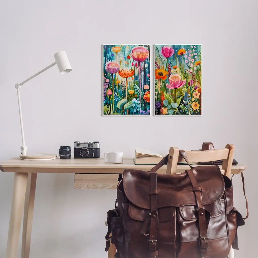Fill any space with Stupell Wall Art Sets. Our wall plaques start as high-quality lithograph prints mounted on durable 0.5-inch thick MDF wood. Each piece is hand finished and comes with a fresh layer of white foil on the sides to give it a crisp, clean look. Plaques arrive ready to hang without installation and come with removable plastic corners to keep them from damage in transit. Stupell Wall Art is made in the USA.Features: Dimensions: 2 Piece Set, Each Panel is 10 x 0.5 x 15 InchesWall Plaque Set Sizes Include Standard: 2pc, Each is 10 x 0.5 x 15 Oversized: 2pc, Each is 13 x 0.5 x 19Wall Art is Ready to Hang with Hardware Free Hanging. No installation required. For Easy Set Up Lean or Layer Artwork on Shelf or Against Wall.All of our wall plaques start off as high quality lithograph prints that are then mounted on durable 0.5 inch thick MDF wood. Each piece is hand finished and comes with a fresh layer of foil on the sides to give it a crisp clean look. Made In USA.Artwork Relates To: Modern, Painting, Plant, Flower, Floral, PetalDesign by LSR Design Studio