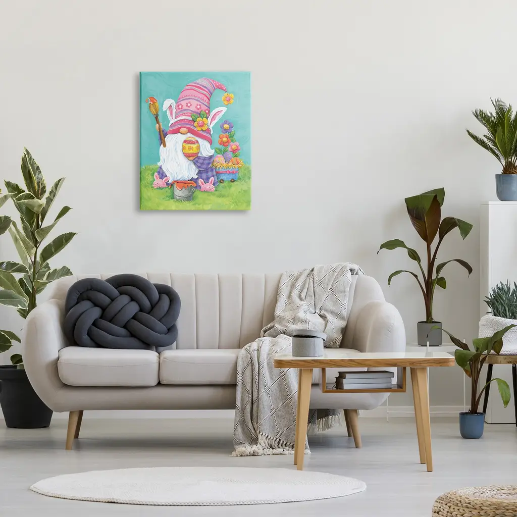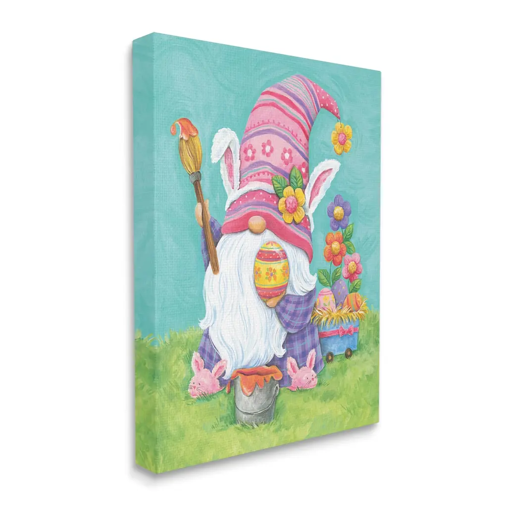 Stupell Whimsical Gnome Painting Easter Eggs Festive Flowers Canvas Wall Art - Multi-Color - 24 X 30