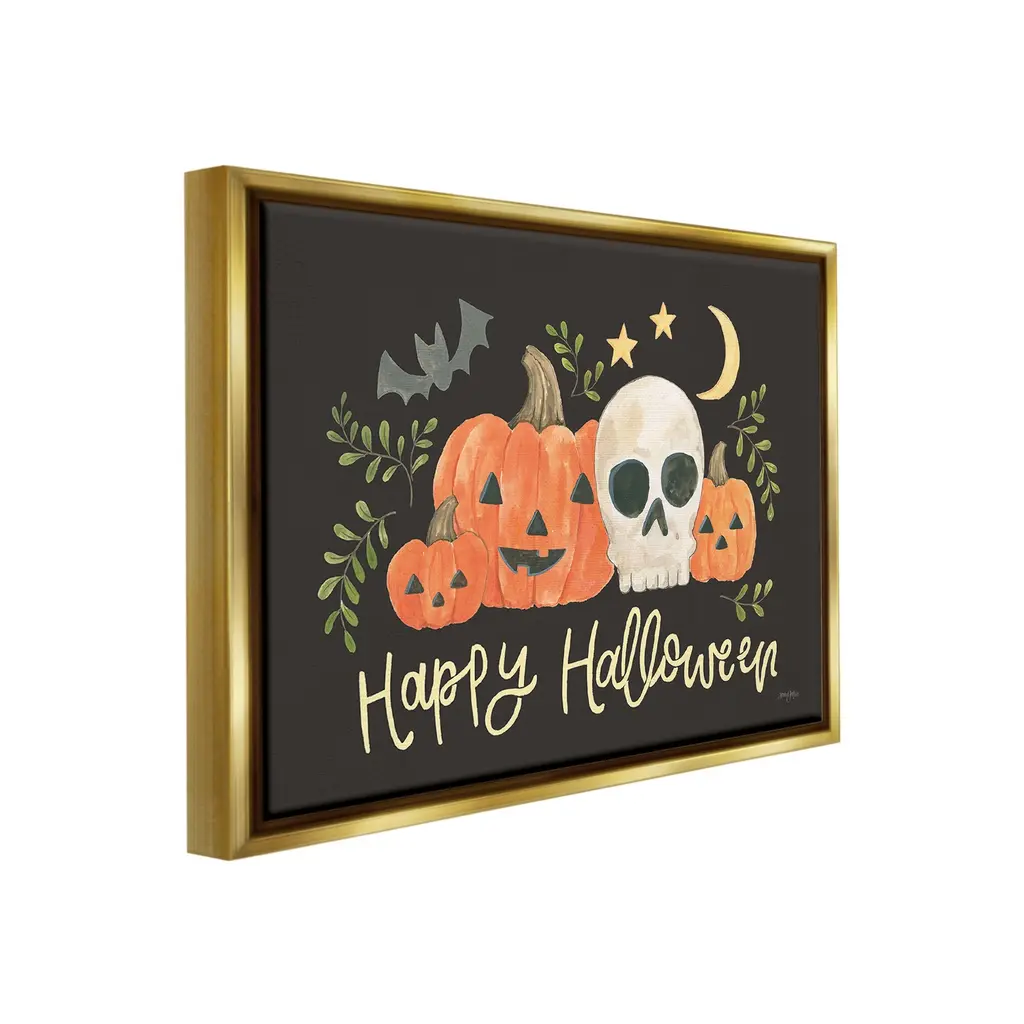 Elevate your home or office to the next level with Stupell Framed Floating Canvas Wall Art. Our premium hand-stretched canvas is mounted securely into a sturdy lightweight frame. The museum-style gap between the wrapped canvas and the box frame gives the illusion of floating artwork. Stupell Wall Art is made in the USA.Features: Dimensions: 21 x 1.7 x 17 Frame, 20 x 1.5 x 16 Canvas ArtFloating Frame Canvas Products are available in sizes 21"x17" and 31"x25". All Floating Frame Canvas Products have a 1.7" Depth.Wall Art is Ready to Hang with Hardware Free Hanging. No Installation required. For Easy Set Up Lean or Layer Artwork on Shelf or Against Wall. Artwork is Permently Fixed into the Frame.Our elevated 1.7" Thick Floating Frame is the perfect complement to our canvas style Wall Art. We use only the highest quality inks in house with industry leading printing solutions. Canvas is hand stretched over a durable wood foundation and then mounted securly into a Modern Box Frame. Made in the USA.Artwork Relates To: Festival, Halloween, Bat, Moon, Stars, Skull, Jack-o-Lantern, Botanical, Leaf, Whimsical, Happy HalloweenDesign by Jenaya Jackson