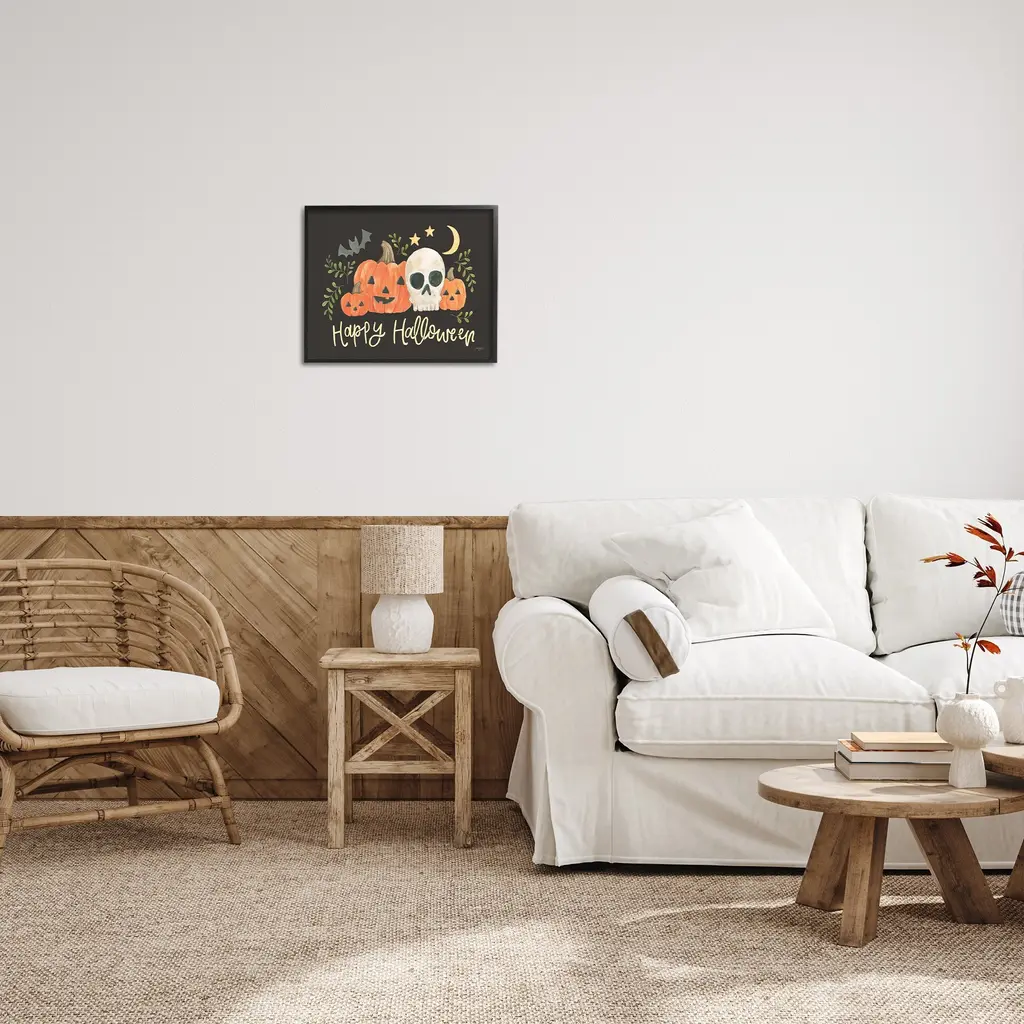 Add dimension to any room with our textured Framed Giclee Artwork. Our framed artwork is securely mounted into a 1.5-inch thick wood grain frame and ready to hang. Frames are available in three alluring styles: black, gray farmhouse and white. In addition, you should check out our oversized options if you want a statement piece. Stupell Wall Art is made in the USA.Features: Dimensions: 14 x 1.5 x 11 FramedFramed Giclee Products are available in the sizes 14"x11", 20"x16" or 30"x24". All Framed Giclee Products have a 1.5" Depth. Wall Art is Ready to Hang with Hardware Free Hanging. No installation required. For Easy Set Up Lean or Layer Artwork on Shelf or Against Wall.Our giclée prints are carefully mounted on a durable MDF backing, and then perfectly finished in a 1.5 inch thick woodgrain frame. Mounted frame colors include black, gray farmhouse and white. Made In USA.Artwork Relates To: Festival, Halloween, Bat, Moon, Stars, Skull, Jack-o-Lantern, Botanical, Leaf, Whimsical, Happy HalloweenDesign by Jenaya Jackson