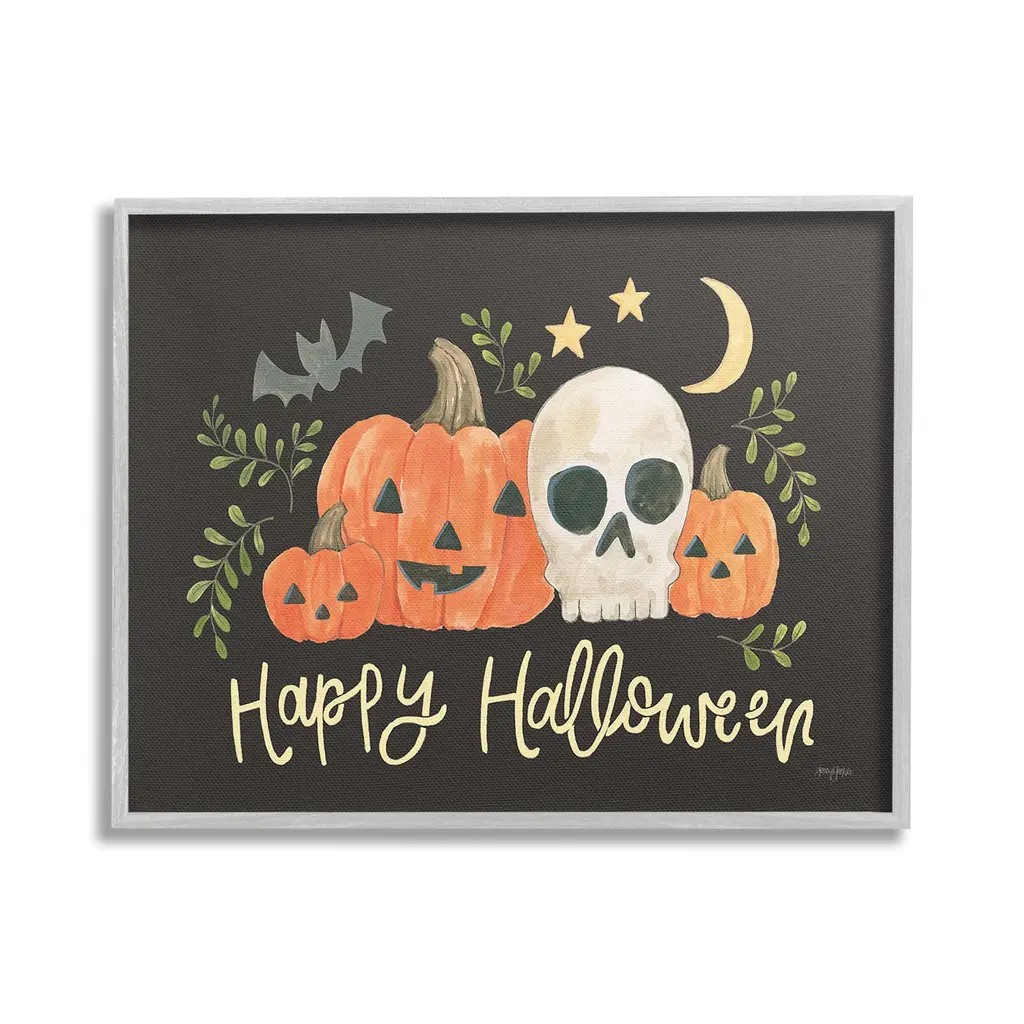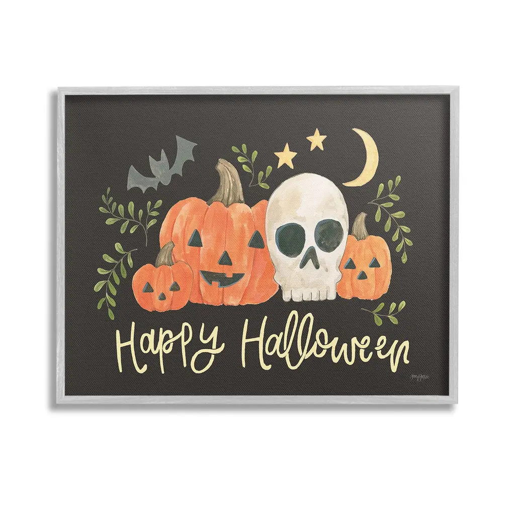 Our wall plaques start as high-quality lithograph prints mounted on durable 0.5-inch thick MDF wood. Each piece is hand finished and comes with a fresh layer of white foil on the sides to give it a crisp, clean look. Plaques arrive ready to hang without installation and come with removable plastic corners to keep them from damage in transit. Stupell Wall Art is made in the USA.Features: Dimensions: 15 x 0.5 x 10 InchesWall Plaque Product Sizes Include 15"x10" and 19"x13". All wall plaque products have a 0.5" Depth. Wall Art is Ready to Hang with Hardware Free Hanging. No installation required. For Easy Set Up Lean or Layer Artwork on Shelf or Against Wall.All of our wall plaques start off as high quality lithograph prints that are then mounted on durable 0.5 inch thick MDF wood. Each piece is hand finished and comes with a fresh layer of foil on the sides to give it a crisp clean look. Made In USA.Artwork Relates To: Festival, Halloween, Bat, Moon, Stars, Skull, Jack-o-Lantern, Botanical, Leaf, Whimsical, Happy HalloweenDesign by Jenaya Jackson