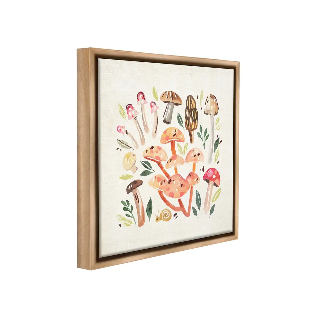Elevate your home or office to the next level with Stupell Framed Floating Canvas Wall Art. Our premium hand-stretched canvas is mounted securely into a sturdy lightweight frame. The museum-style gap between the wrapped canvas and the box frame gives the illusion of floating artwork. Stupell Wall Art is made in the USA.Features: Dimensions: 18 x 1.7 x 18 Frame, 17 x 1.5 x 17 Canvas ArtFloating Frame Canvas Products are available in sizes 18"x18" and 25"x25". All Floating Frame Canvas Products have a 1.7" Depth.Wall Art is Ready to Hang with Hardware Free Hanging. No Installation required. For Easy Set Up Lean or Layer Artwork on Shelf or Against Wall. Artwork is Permently Fixed into the Frame.Our elevated 1.7" Thick Floating Frame is the perfect complement to our canvas style Wall Art. We use only the highest quality inks in house with industry leading printing solutions. Canvas is hand stretched over a durable wood foundation and then mounted securly into a Modern Box Frame. Made in the USA.Artwork Relates To: Animal, Plant, Nature, Botanical, Plant, Traditional, Study, Vintage, Cottage, Country, Mushroom, Leaf, SnailDesign by Annie Warren